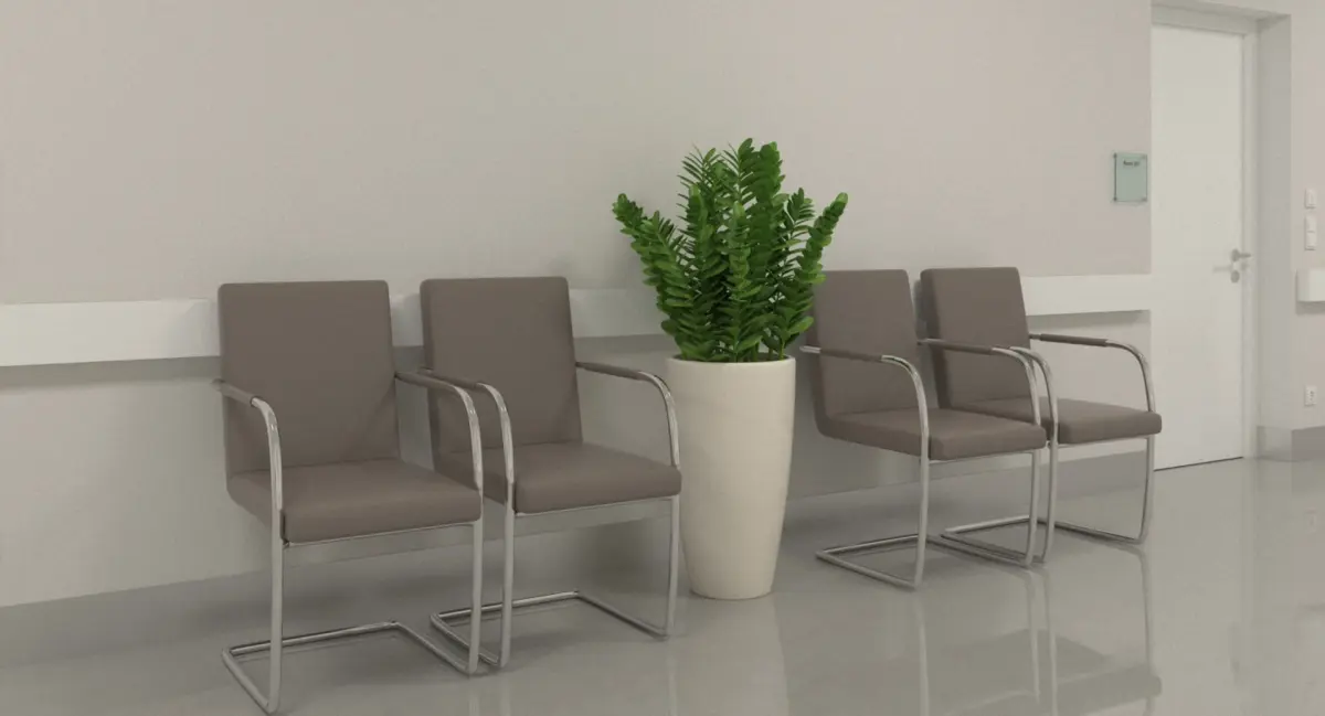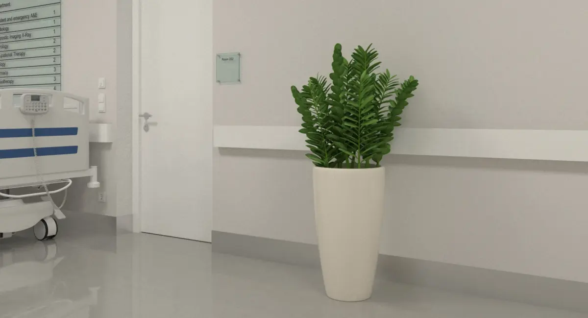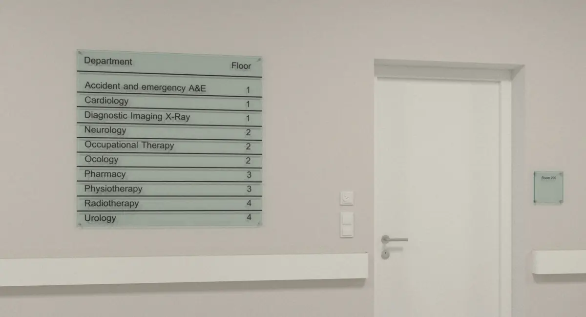 A DETAILED 3D MODEL SCENE OF A HOSPITAL HALLWAY:
