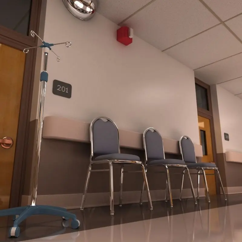 Highly detailed 3d scene of a Hospital Hallway.Created in Maya 2012 and rendered with V-ray.