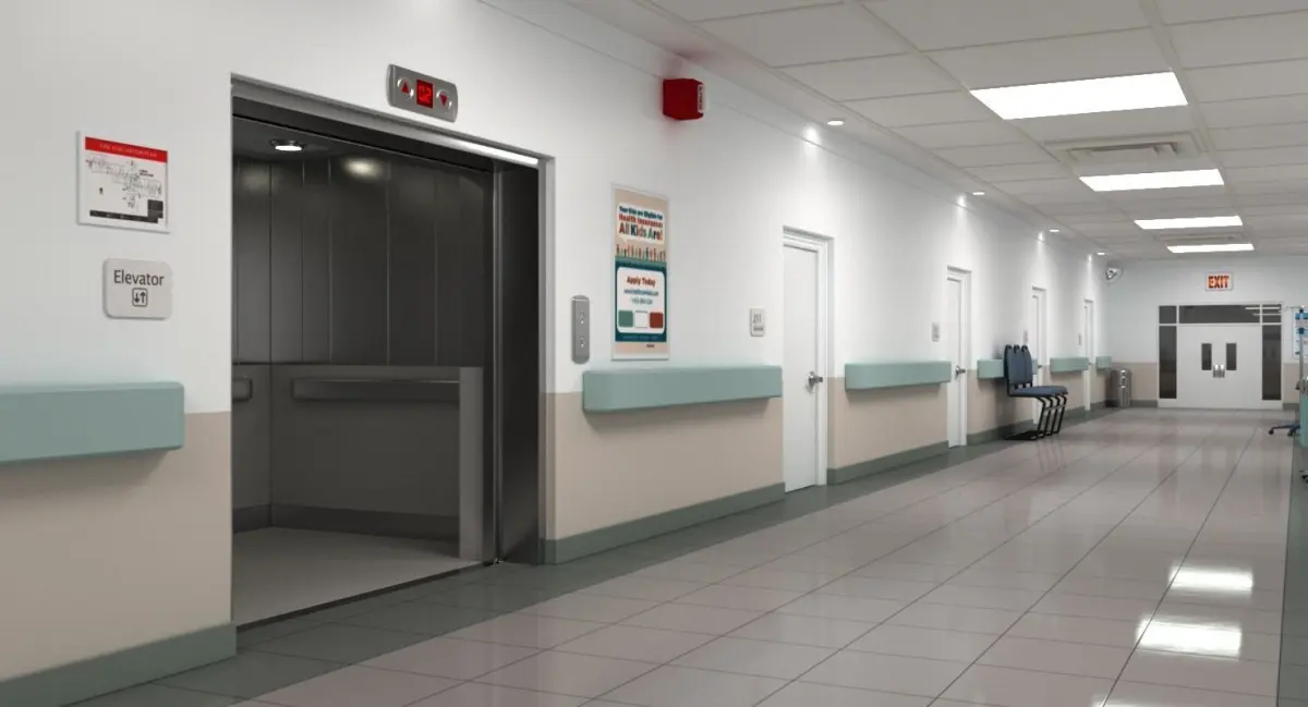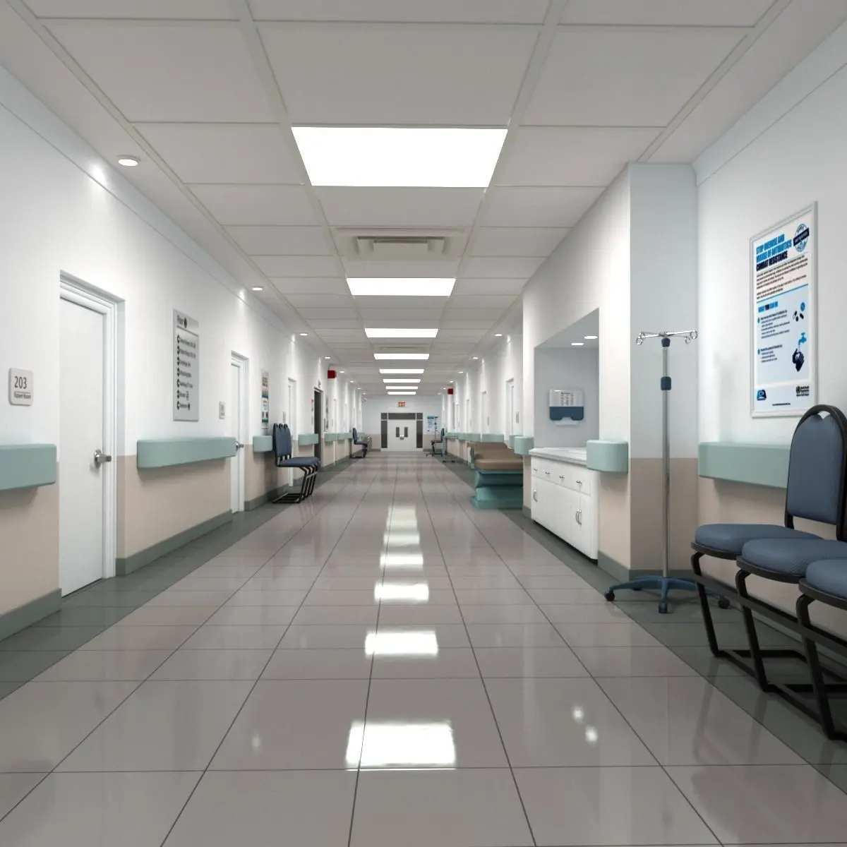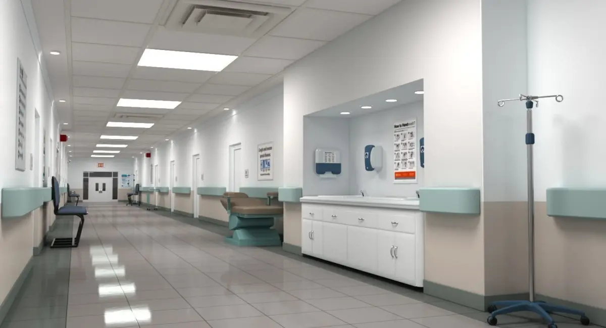 HIGHLY DETAILED 3D MODEL OF A HOSPITAL HALLWAY