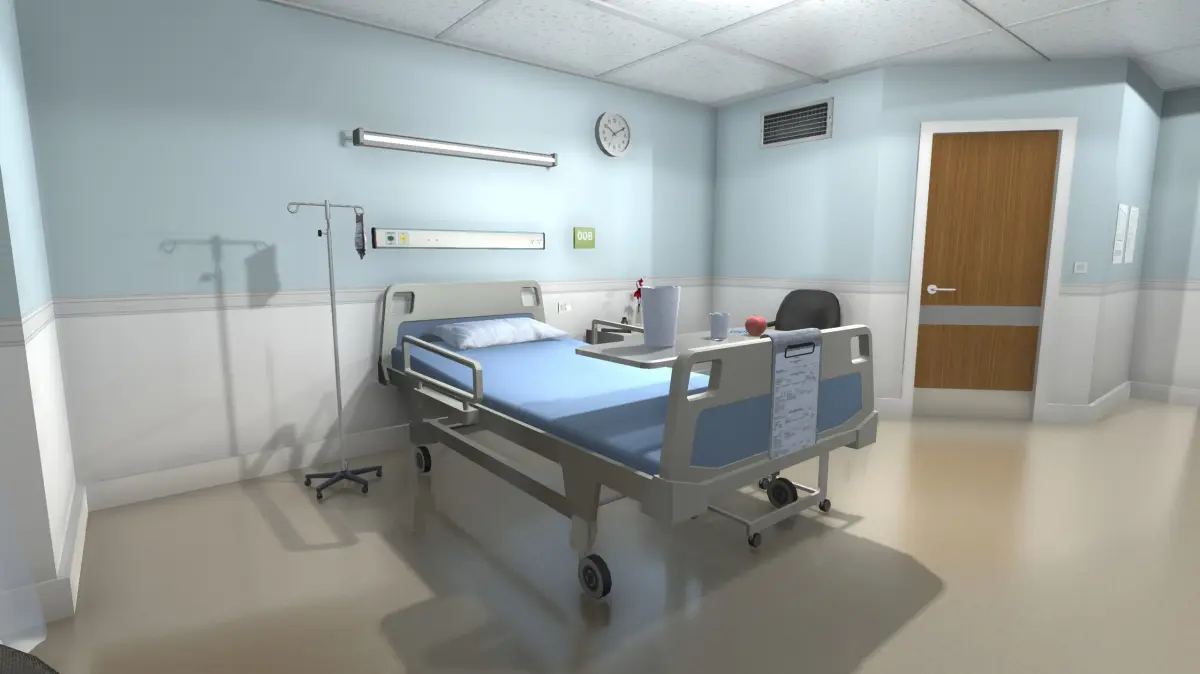 Interior of a hospital room with a total of 45 models of basic objects that we could find in a real hospital room originally created for Unity. We have models like a special bed, a hospital trolley, a clock, two different types of lamps, several posters, a hospital cart, iv pole, a bedside table, chairs, and objects on the tables like an apple, a towel, a jug, a plastic glass, a spoon.... The FBX models and textures are included separately to be used in other 3D apps. (If you are not using Unity, you will have to assemble the scene in the program you are using for it). All the models are low-poly to be used in games and applications.