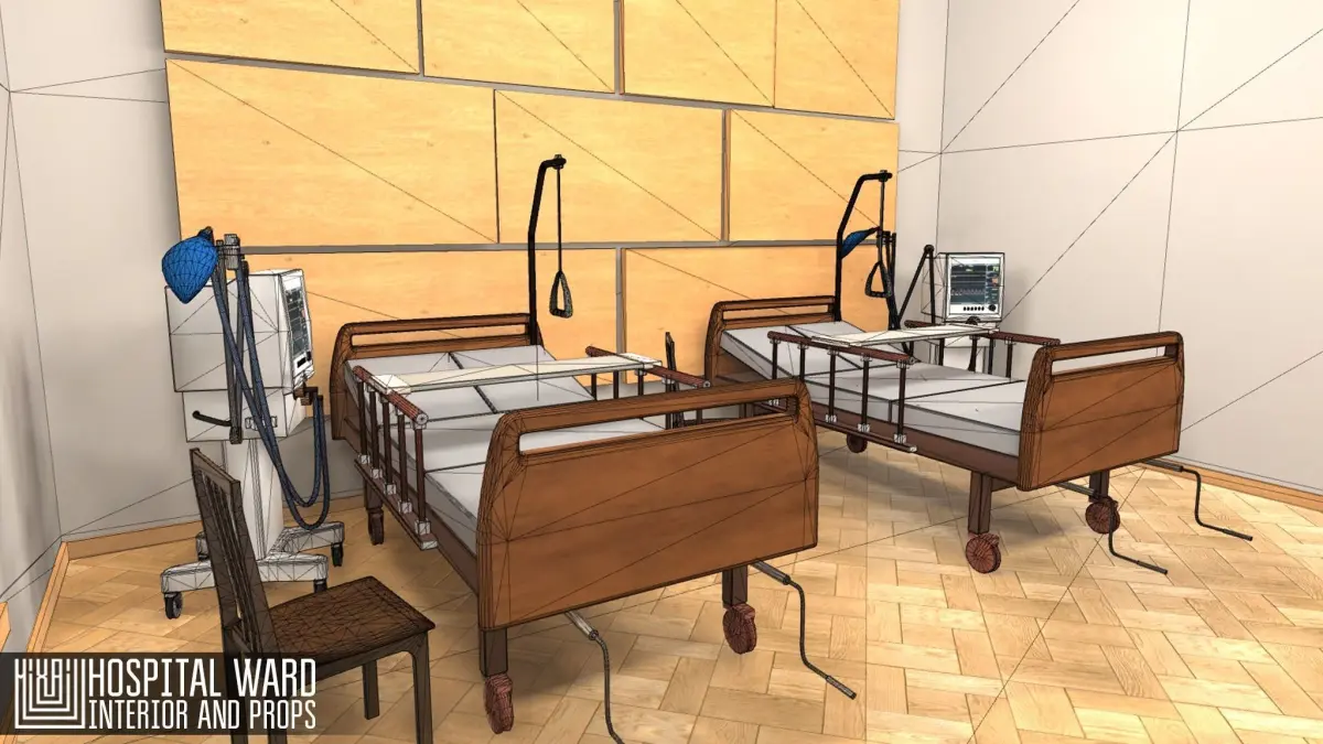 Mixaill studio presents a good solution for your games, VR projects and simulators.Hospital ward - interior and props is a hospital room with furniture and interior items that will help you save time on implementing your ideas.There is a ready-made scene for the Unity and Unreal enginesPack includes a large set of necessary models:roomwindowdoortablehospital bedchaira bowl of fruitlife support apparatuslamp