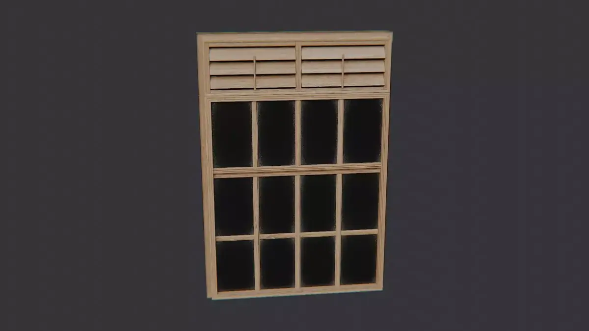Hospital style window with wood frame and multi pane glass adds realism to architectural scenes. The model includes emissive and opaque glass materials for varied lighting and reflections. Suitable for interior and exterior renders in modern or historic setups. Clean topology and UV mapped surfaces ensure easy texture work.