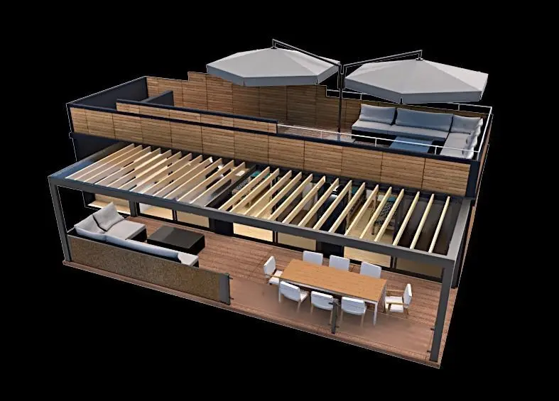 hostel and SPA, mobile home version 3d modelmobile home vacation house-hostel with bunk beds on 40m2 with roof top terrace. Modern , completely finished ,fully furnished mobile home/vacation house/tiny house with terrace and roof top terrace Modern designed mobile house on 40 m2 with terrace. toilet/shower, bunk beds ... Unique designed,highly detailed model with lot of useful 3D models and furniture in it and lounge on terrace..Model contains 7 hostel units and spa with jacuzzi and sauna,lunge,outdoor garniture... with all the furniture .Different facade variables are possible. On the back front of the mobile house ,there is big and nice terrace .Suitable for sea site area as for the mountain areas. Model is done with sketch up 2017 pro and rendered with v-ray 3.4. All textures and furniture equipment is in high resolution,have been checked and are included in scene.Textures are included.Model is easy to manipulate and ready to render with v-ray. Real world scale and exact proportions cm. Realistic and correctly scaled ! • Excellent polygon & texture efficiency Purchasing this model , you get files in different formats as :skp, or ask designer for different formats. Additional Textures provided with the model:
