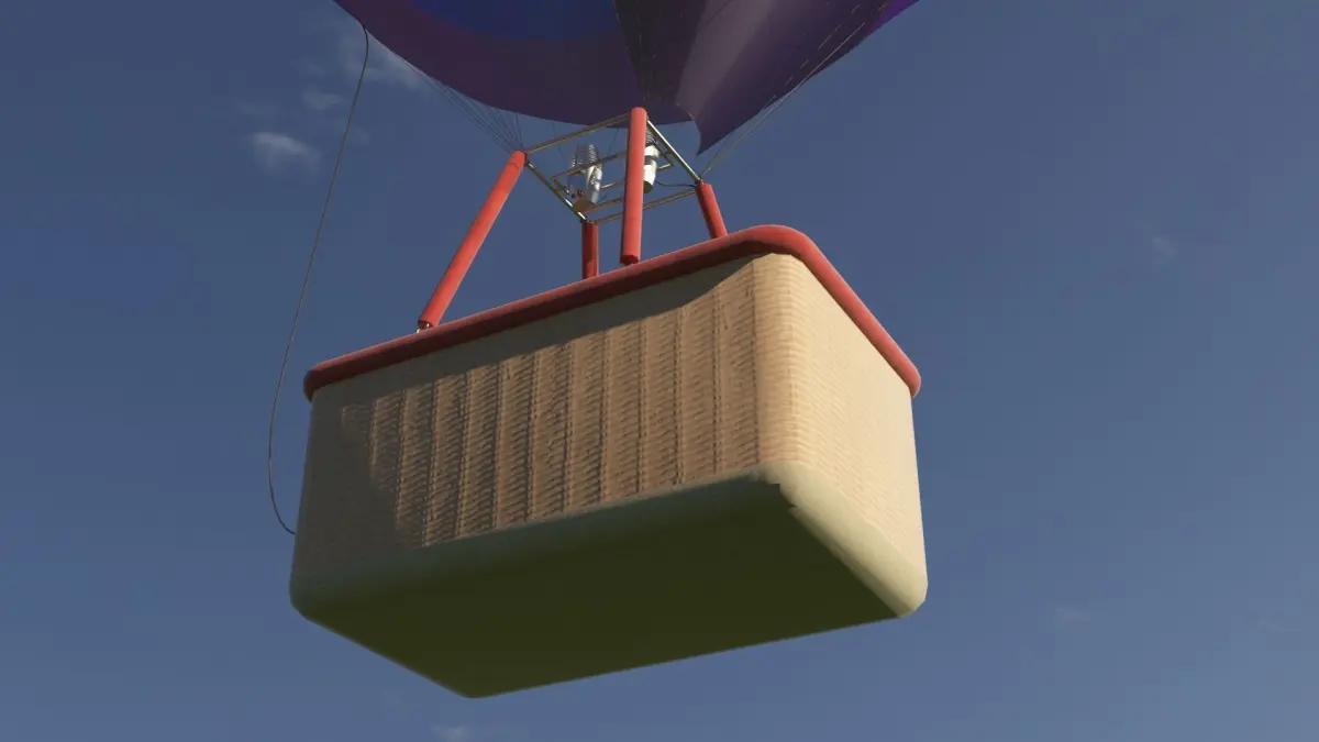A low-poly hot air balloon model with textures.