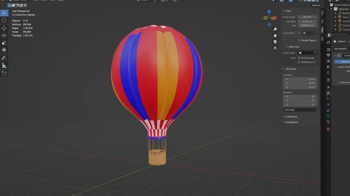 Hot air balloon model. It is a model that can provide richness in your projects, game or movie scenes with its balloon section and circular basket section with various colors. The main file format is .blend. Other required file formats and sample images have been uploaded. It is left as subdivision level 3. You can change it if you wish. Thank you for the interest you have shown. Please do not forget to like and comment.