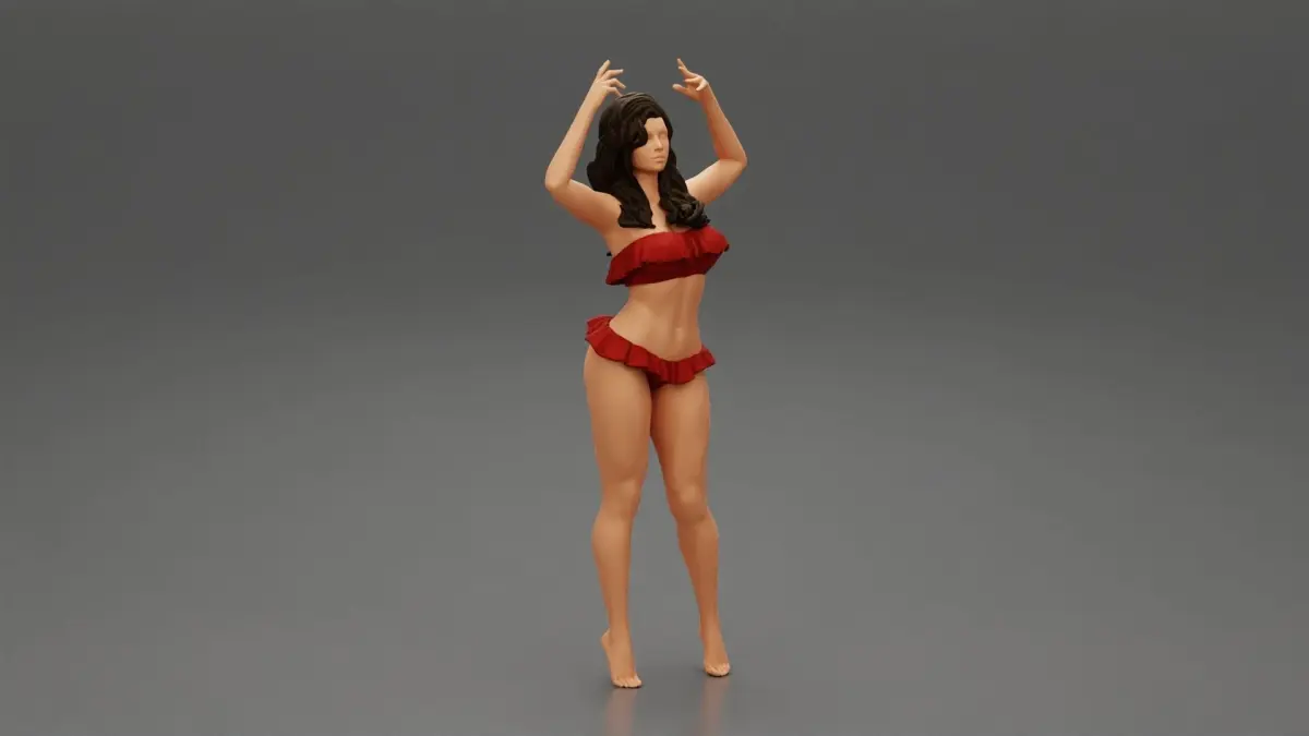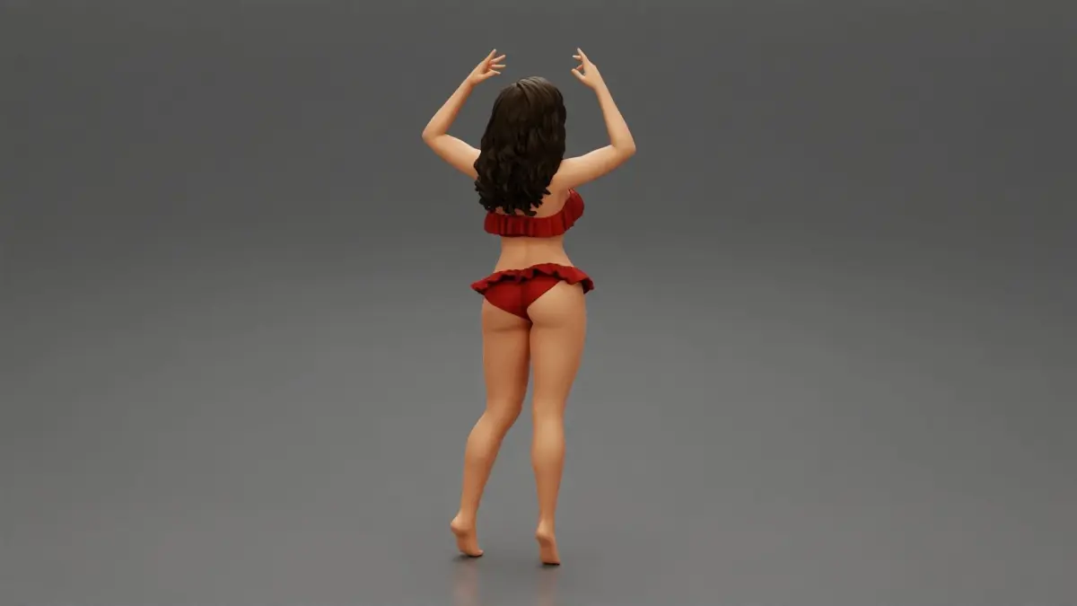 Hot beautiful woman in bikini standing with her arms raised up 3D print model