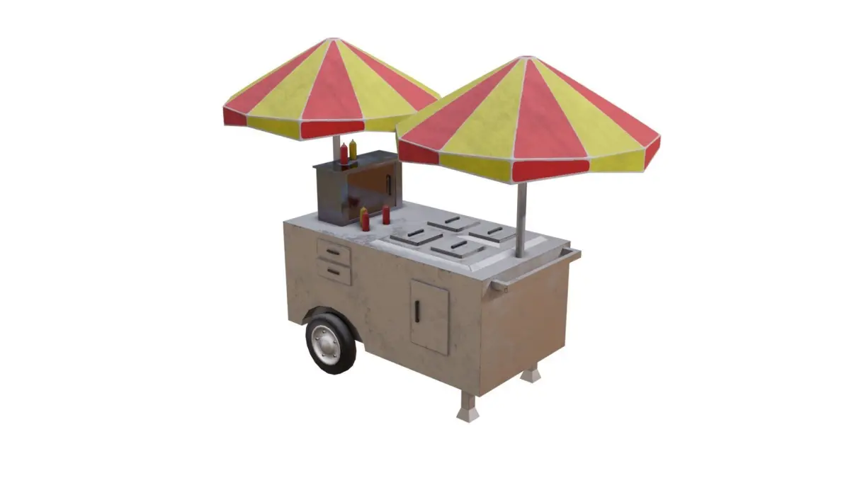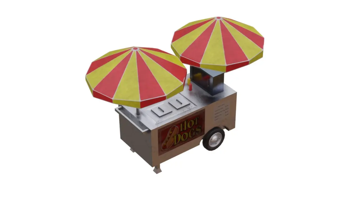 - Specialized mobile cart for hot dogs to prepare and sell street food, especially hot dogs.