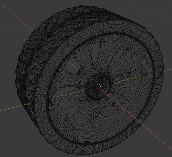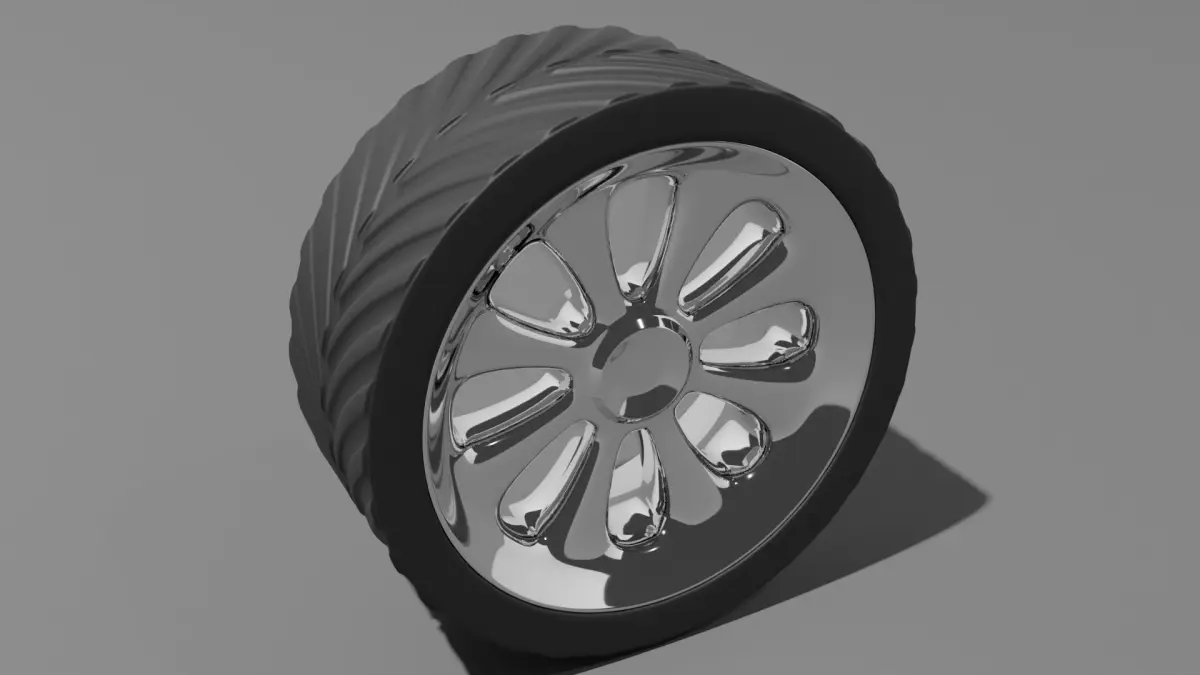 Model of the hot rod chrome wheel (rim+tyre).Native format .blend (Blender 2.80)Low+medium+high poly conversion by subdivision surface modifier.