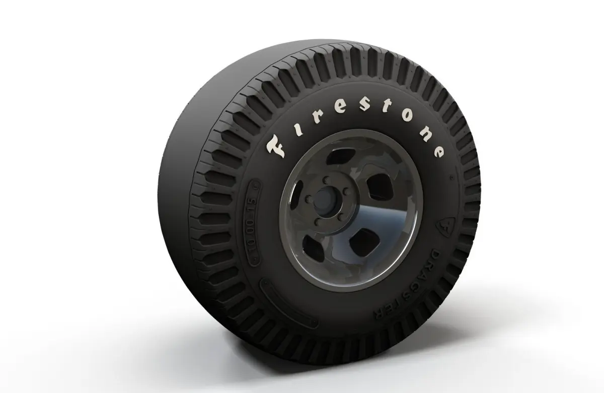 Highpoly vintage gasser wheels model. High accuracy rim and tire with thread and side text. Created with 3ds Max 2017 and saved as 3ds Max 2014.Fanton rear rim. American Racing twelve-spokes front rim. Firestone cheater slick for rear.