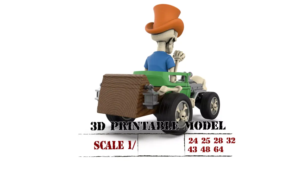 Specs: •1/24 •1/25 •1/28 •1/32 •1/43 •1/48 •1/64 The model includes: • Body • Wheels • Tires • Skeleton, HotRod, Skull.