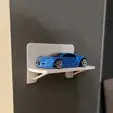 This is a very unique hot wheels display shelf. It is easy to print and requires no supports. To hang on a wall, use a 3M double sided adhesive strip and stick to a wall. This item works for any die-cast car with 1/64 scale.