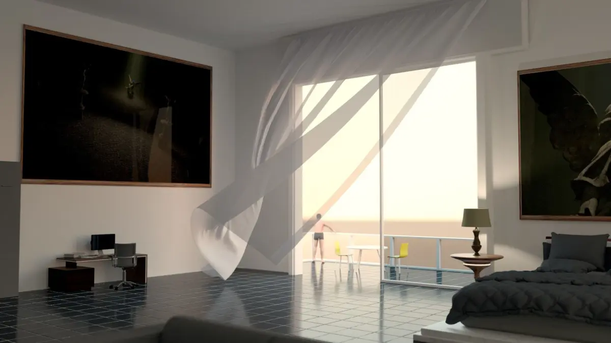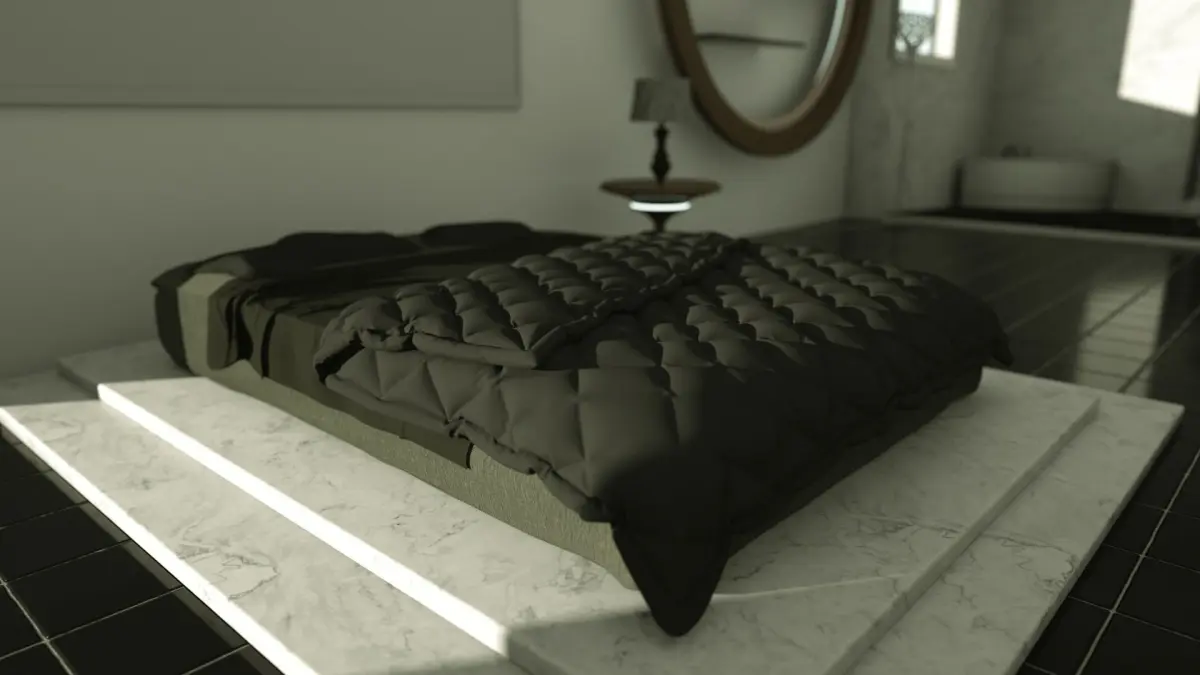 The Scene contains a hotel a bedroom, bathroom, balcony, living room and toilet for Cinema 4D, Marvelous Designer & Octane.