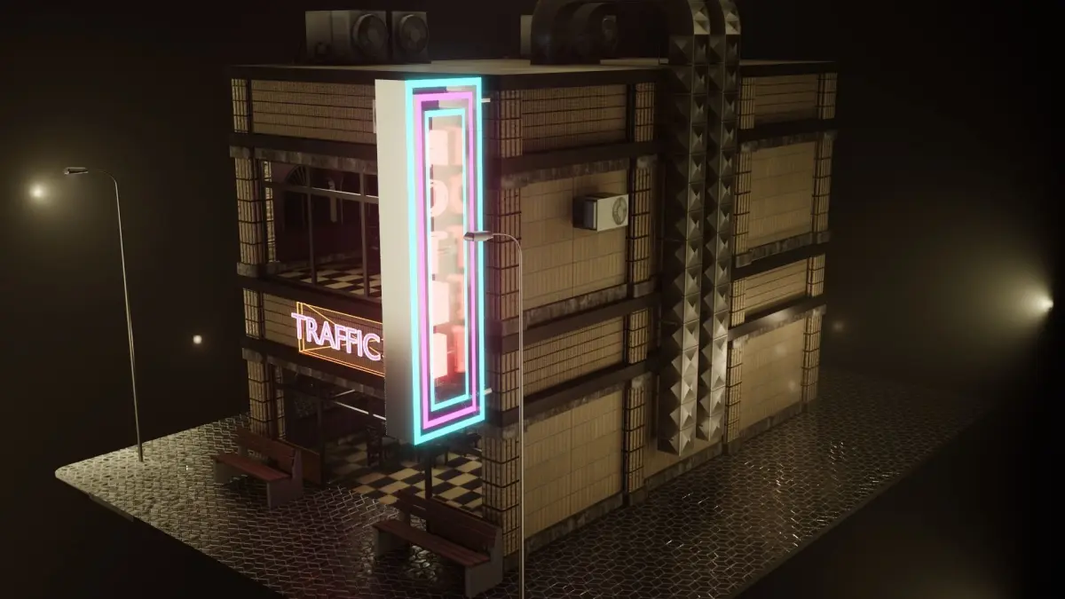 Render in Blender Eevee(2.9)Textures included3D models:- Hotel (base building)Table and ChairsStreet LightAir conditinerChimney outlet pipesSitting bench___________________________________________________Thanking you_________________________________________________________
