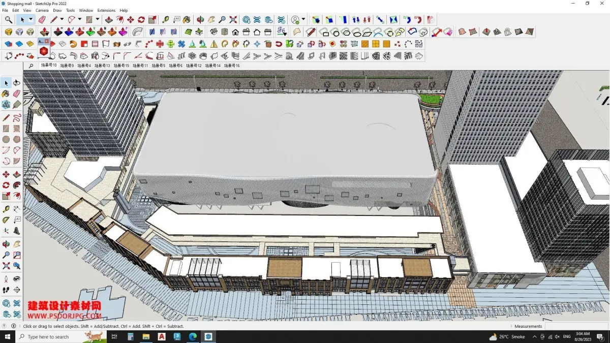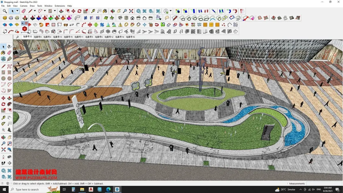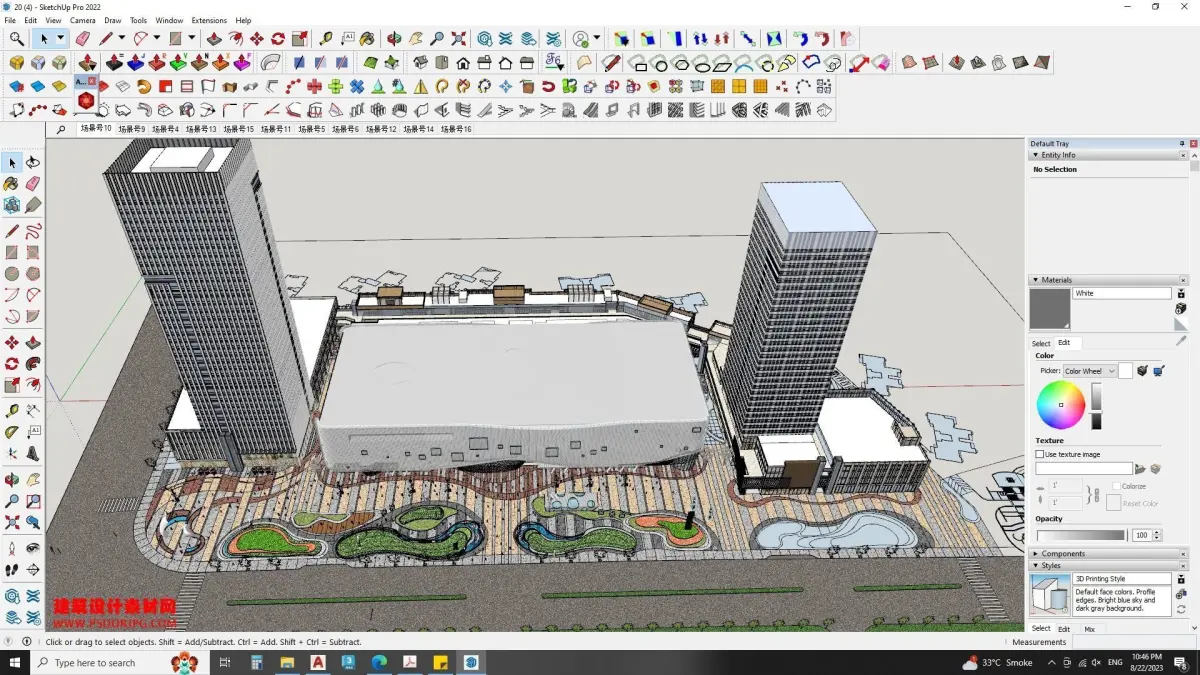 This Hotel Building model includesOutdoor concrete paversMonument designwater fountaincontemporary facade claddingRetail Shops2 Office buildingsGreen patchGlass facade