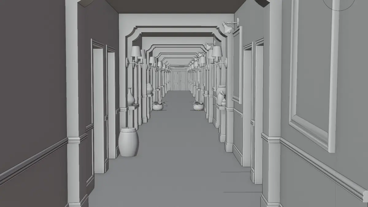 Detailed Modular Corridor Interior Scene.