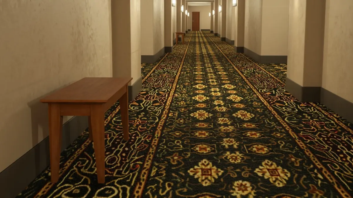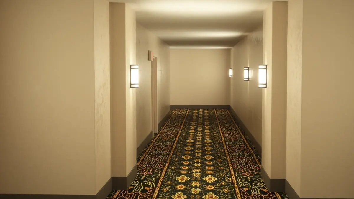 A spooky hotel hallway.Format: cinema4d octane render, .fbxBasic colored .fbx included in rar file
