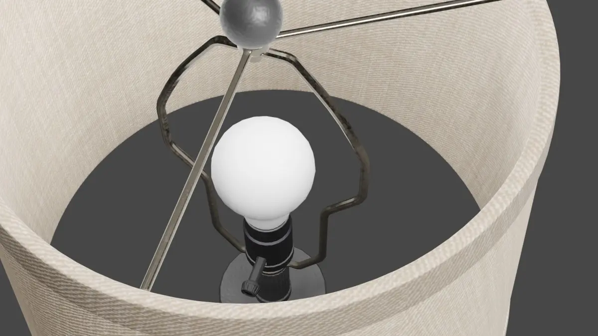Textures are created in PBR workflow (diffuse, roughness, normal, metallic).Lamp is modeled so that smoothing is not required on anything except the lamp shade (a smoothing modifier is applied to the lamp shade in the blend file).