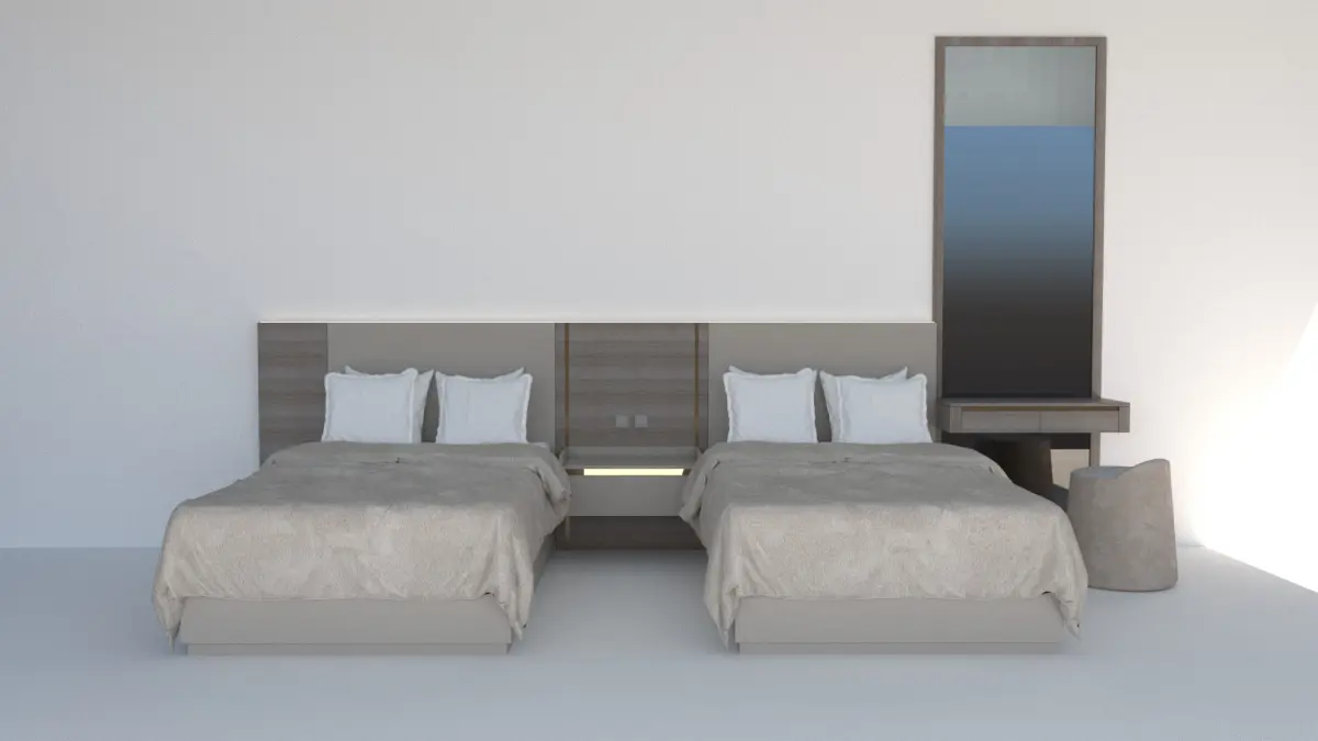 This Modern Twin Bedroom Set is a sleek and stylish addition to any interior visualization project. The model includes two twin-sized beds with soft, realistic bedding, a central bedside table with outlets, a full-length mirror, and a matching vanity stool. Its neutral tones and minimalist design make it ideal for residential or hospitality projects, ensuring it blends seamlessly into various room layouts. Perfect for use in architectural renders, animations, or as a standalone asset. Optimized for high-quality renders with clean geometry and ready-to-use textures.