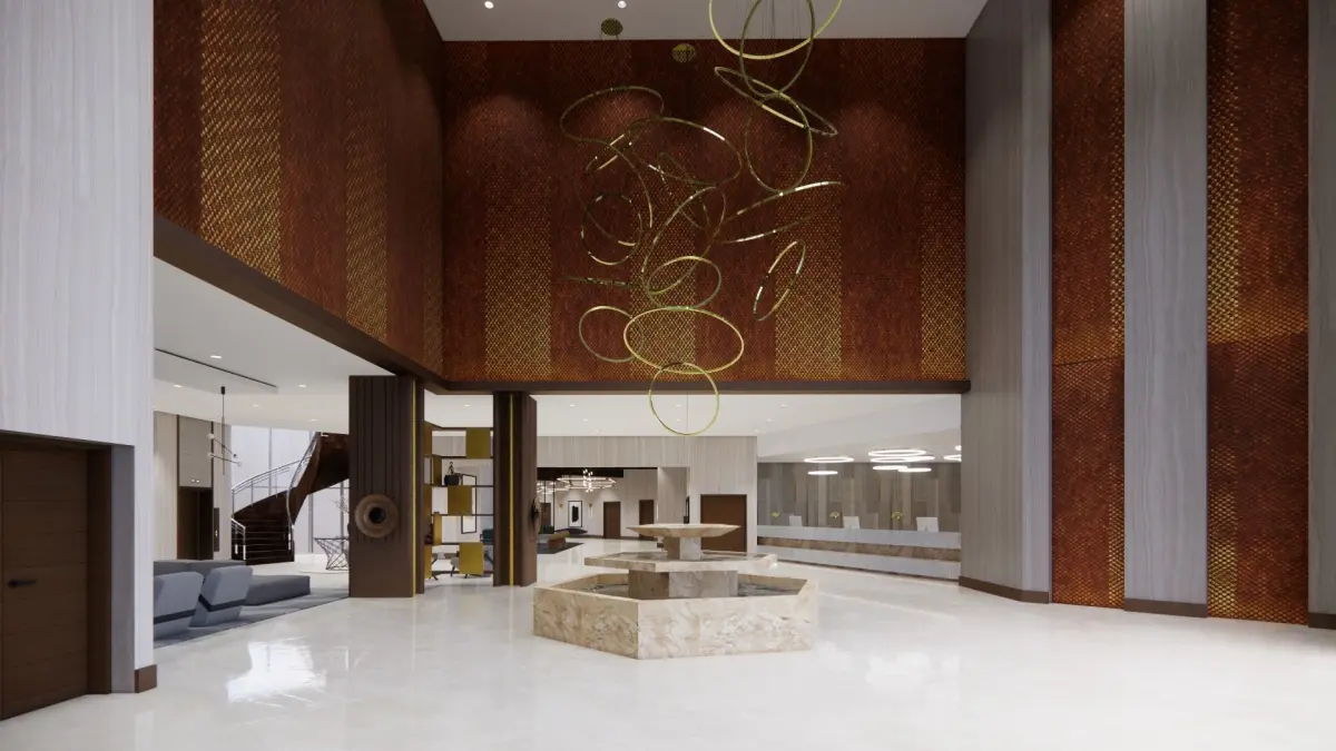 Modern Hotel lobby. file has no protection. It is a modern-styled hotel lobby space ready to render with V-ray or Enscape software. One will find FBX files that can be imported into various modeling applications, such as Maya, 3ds Max, SketchUp, and Blender.Inside the file, one will find multiple materials, light setups, and camera angles that can easily be adjusted or changed to personal taste. This file does not have any protection. You can reuse the scene, the render settings, the lights, and the materials, but above all you can learn from the file, moving inside the project, observing how the light was created and handled, how materials are developed, what the role that every texture play within them, and the values that fill every single option.