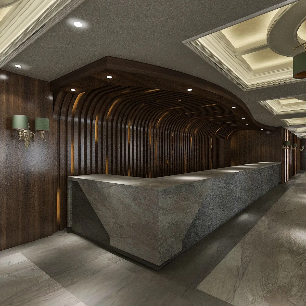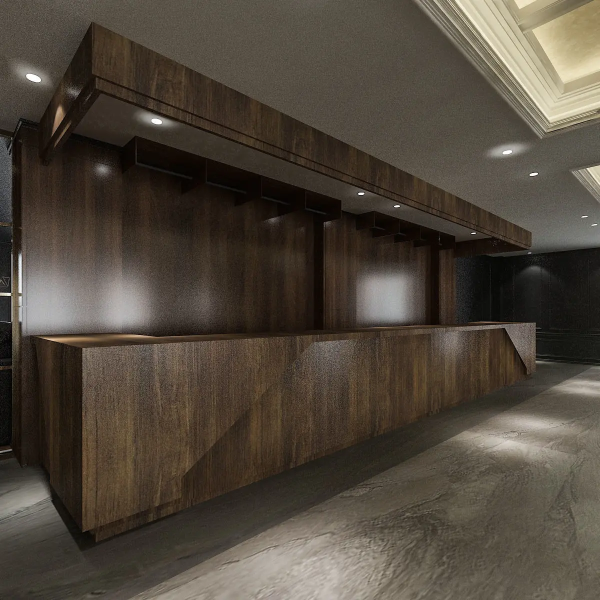 Hotel lobby, ready design for your projects, impressive concept.Inside, bar, waiting area, reception, hallway, cloakroom.All colors are compatible and impressive.loft and industrial bar, classic corridor, well designed reception.Easy to use realistic vray settings.