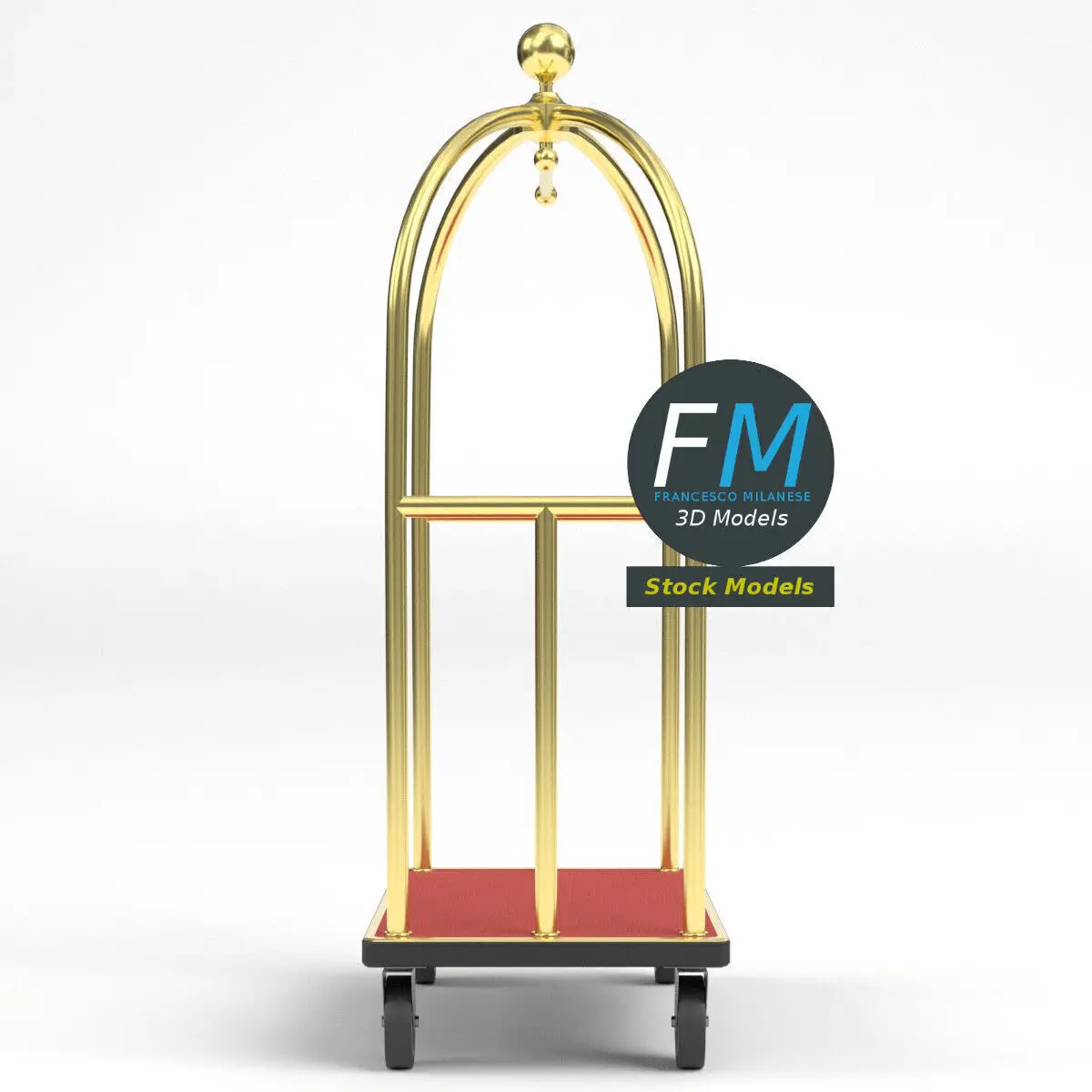 Hotel luggage cart 3D Model. 9 individual objects sharing 1 non overlapping UV Layout map, Material and PBR Textures set. Production-ready 3D Model, with PBR materials, textures, non overlapping UV Layout map provided in the package.Quads only geometries (no tris/ngons).Easily customizable: UV unwrapped geometries; UV Layout maps provided in the package as png with alpha images.Each Object, Material or Texture provided in the package has a unique, meaningful name.Made in Blender 4.3.2 with Cycles Principled BSDF PBR shader with textures included (Eevee compatible), then exported to OBJ and FBX; materials and textures made in Substance Painter (Adobe 3D Painter), exported for PBR, Cycles, V-Ray, Unity, Unreal.PROMO IMAGES: the first image has been rendered in Cycles for Blender; in particular, you can find 11+ promo images in this description: