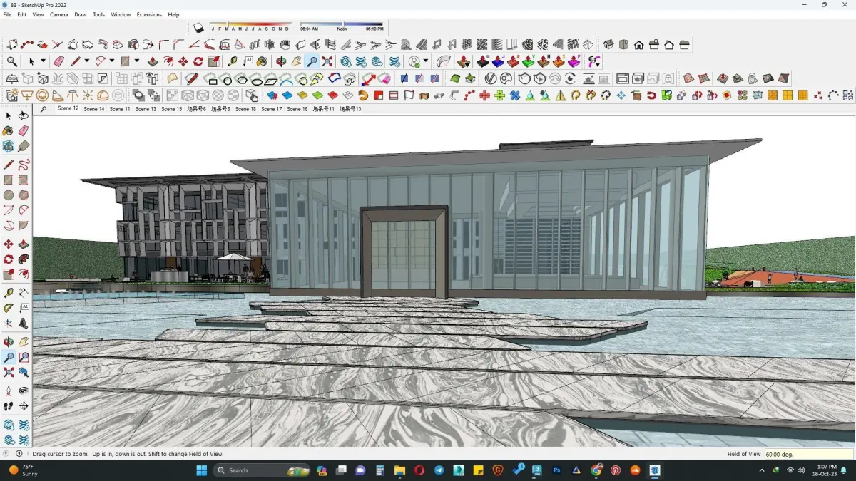 includesoutdoor pavers landscapewater fountaingreen patchglass entrance gateminimalist modern office