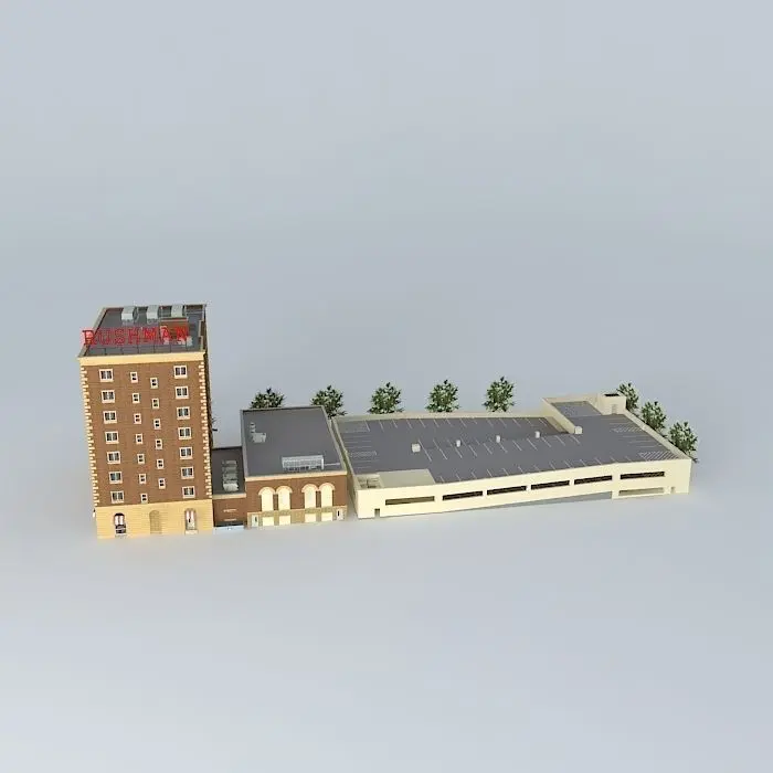 This 3D model was originally created with Sketchup 8 and then converted to all other 3D formats. Native format is .skp 3dsmax scene is 3ds Max 2016 version, rendered with Vray 3.00 Rushman, here is a hotel. You get a grand hotel with 117 fully furnished guest rooms. The office chair is by Sandy and the beds are google products. The other contributor made the lounge chair. The rest are responsible for the plants (I forgot who). I made everything else including the air conditioning and air diffusers on the roof. This hotel features a main hall and service all on each floor. All floors also house a vending nook and utility conduits. There are alternating mechanical room/cleaning supply with laundry rooms. There are 2 elevators and 2 stairwells. Note: The hallways have bulge-out walls with black within. Those hide water conduits and the central structural support columns for the building. The hotel's lobby is closed off currently but I'm working on it! In back, there is a loading dock. Further, there is an upper banquet hall, below is an indoor swiming pool and fitness center (also closed off)-It should be done by the summer, all of it! It looks like a building in Brooklyn. In fact, this house, eh, hotel, is for everyone, the perfect addition for your downtown city center. There is a low rise parking structure in back with an underground tunnel to the main building (not shown here). The entire premisis is included. This model is over 100ft high! The roof is on its own layer, turn it off to see the rooms inside. I'm not sure why it is geographically located... maybe one of the items? Shouldn't be there... Please rate, enjoy!