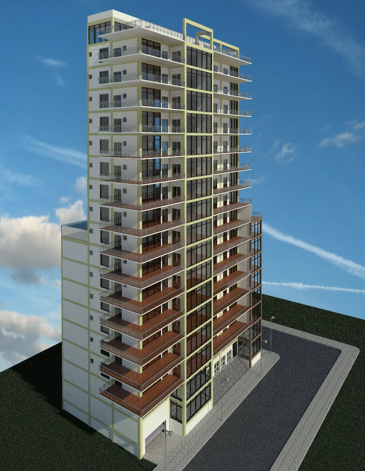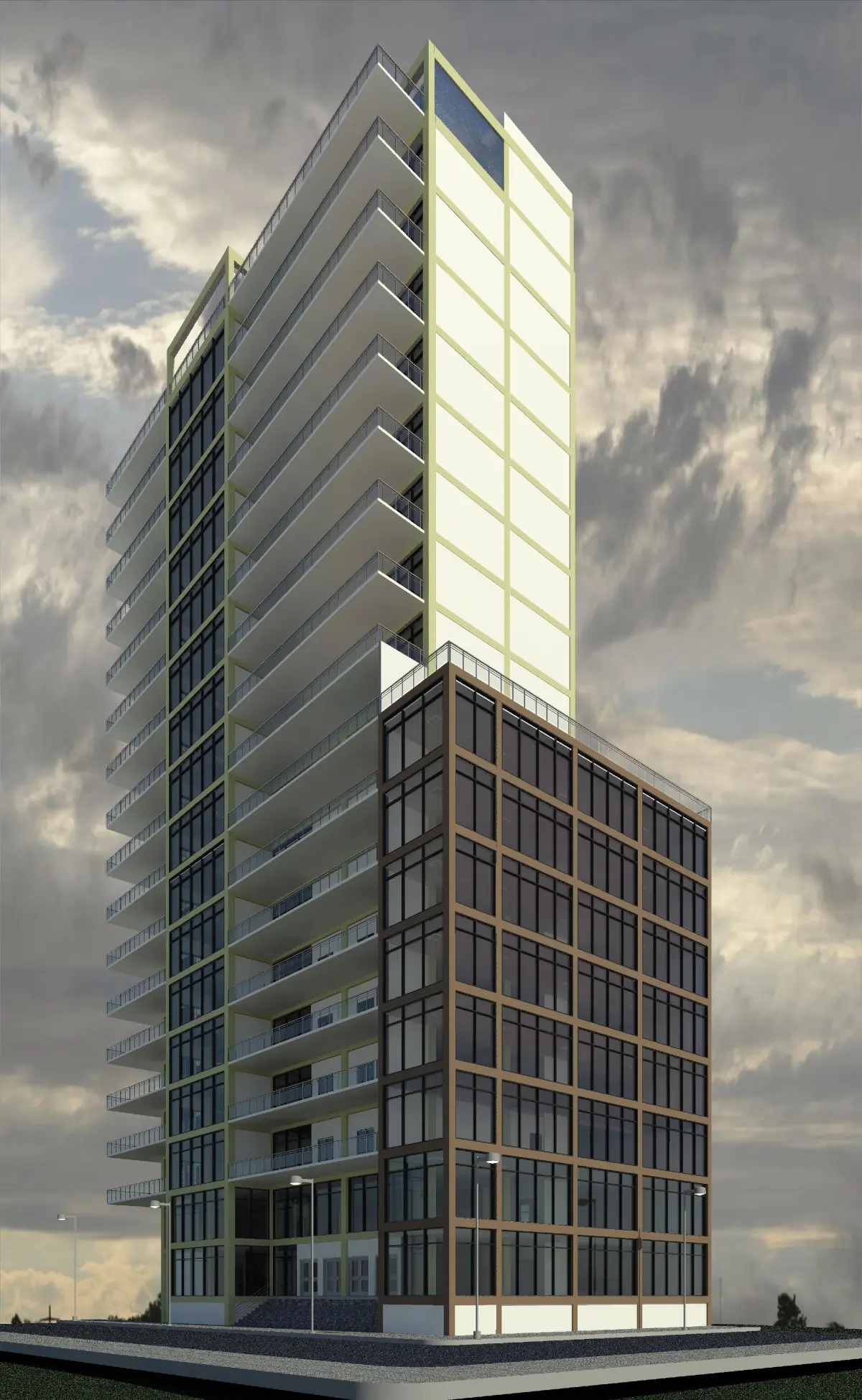 - Building with concrete structure and foundation by piles.