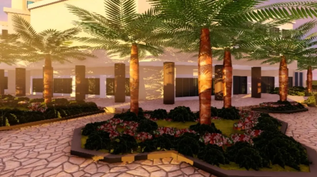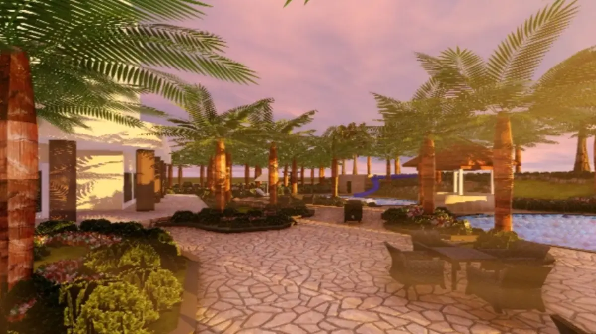 Hotel with swimming pool exterior 3D environment and property modeled after Shangrilla Hotel Surabaya.Human 3D model not included.