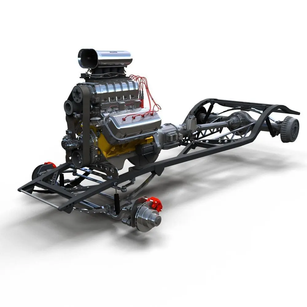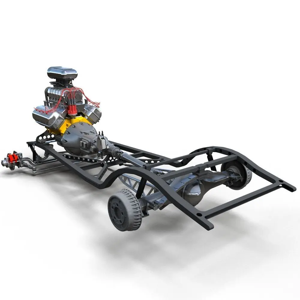 High detailed custom gasser hotrod frame with vintage hemi engine.