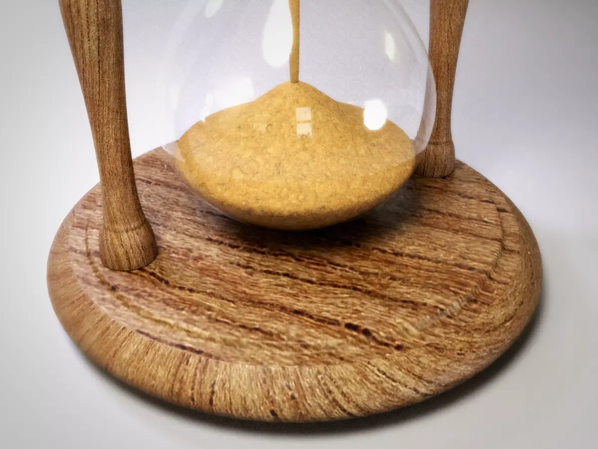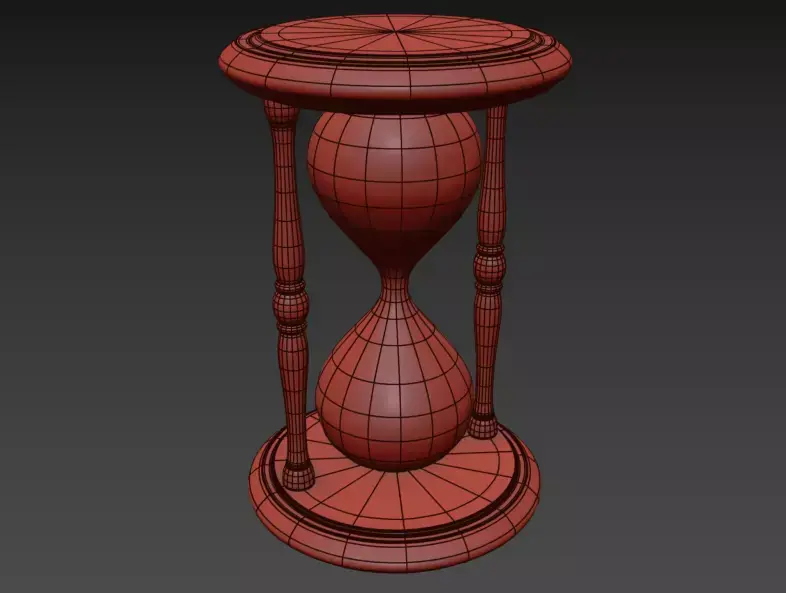 This meticulously crafted 3D hourglass embodies the passage of time through a harmonious blend of classic design and realistic detail. Featuring a turned wooden frame with a circular base and top, the model is supported by three elegantly sculpted columns. The clear glass bulbs contain fine sand mid-flow, capturing a moment of transition—perfect for visual storytelling, game environments, or cinematic renders