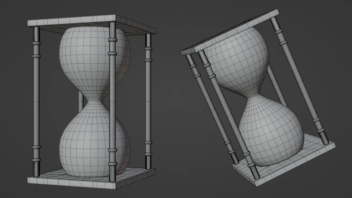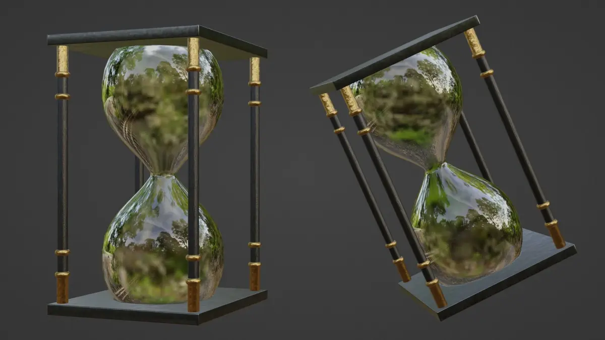 This model was created in a way to make it look like a real hourglass. Preview images were rendered with Blender Eevee and Cycles.