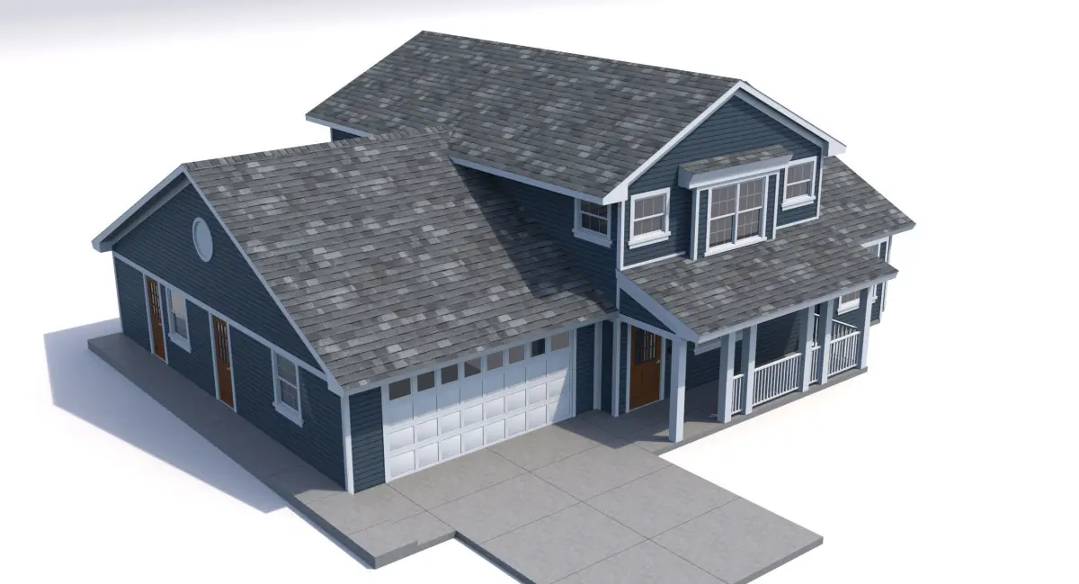 Modeled in 3ds Max, rendered using Vray and HDRI lights, HDRI not included.-Set to 0,0,0 Axis -All objects grouped into a single group for easy scene movement.-Wood, concrete, shingles, siding, textures included. -Address Can be easily changed-Includes Mailbox in Front-Garage door has top row of windows.-White trim has wood Texture in bump for close up.-Glass is reflective so you dont see inside