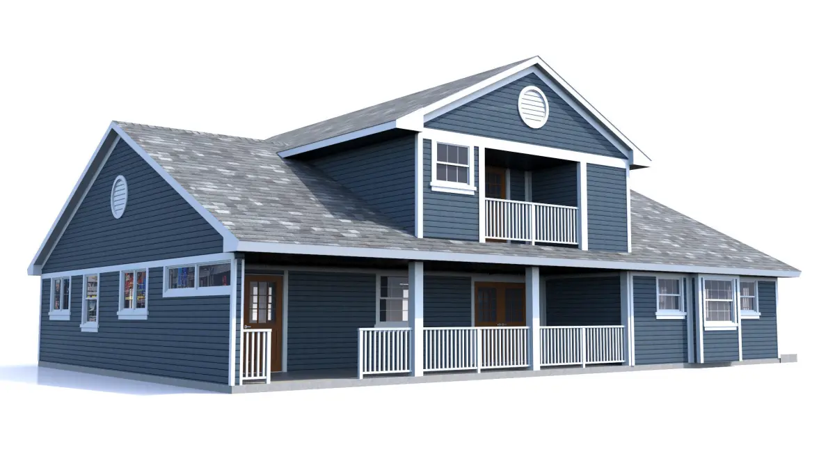 Two story Home w. Blue Siding and White trim & GarageLow Poly High Detail model