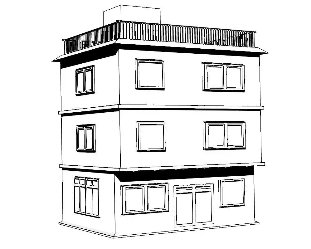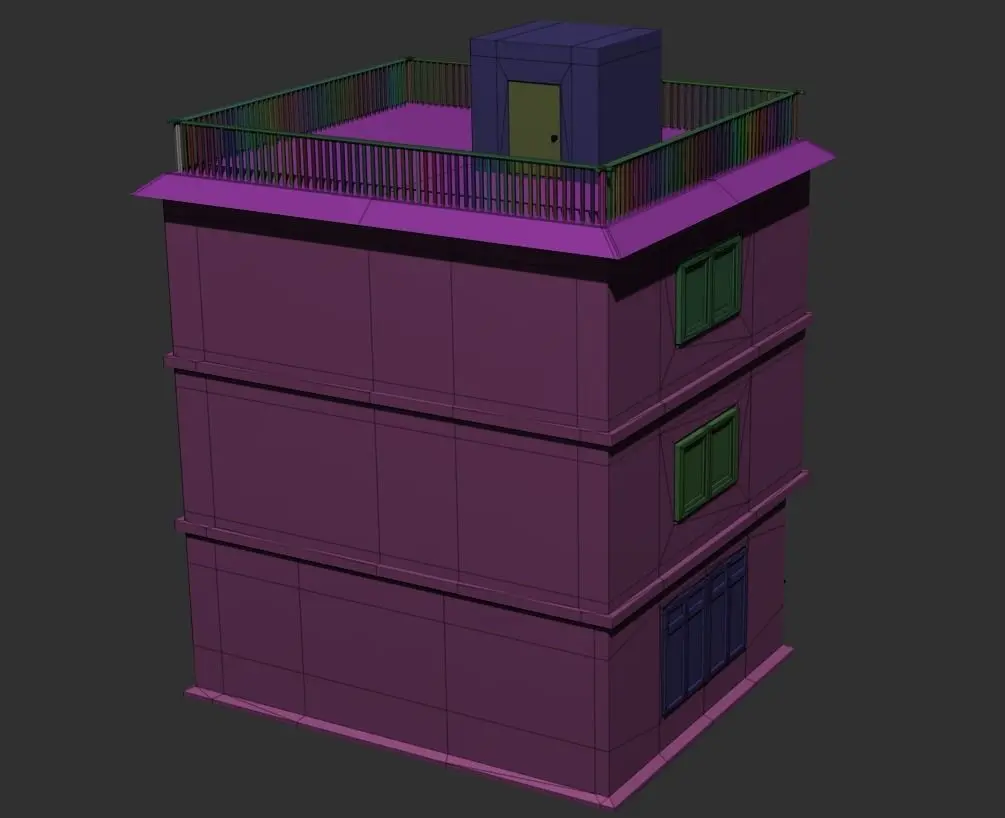 Building modelled in Blender and set up for game engines in general.