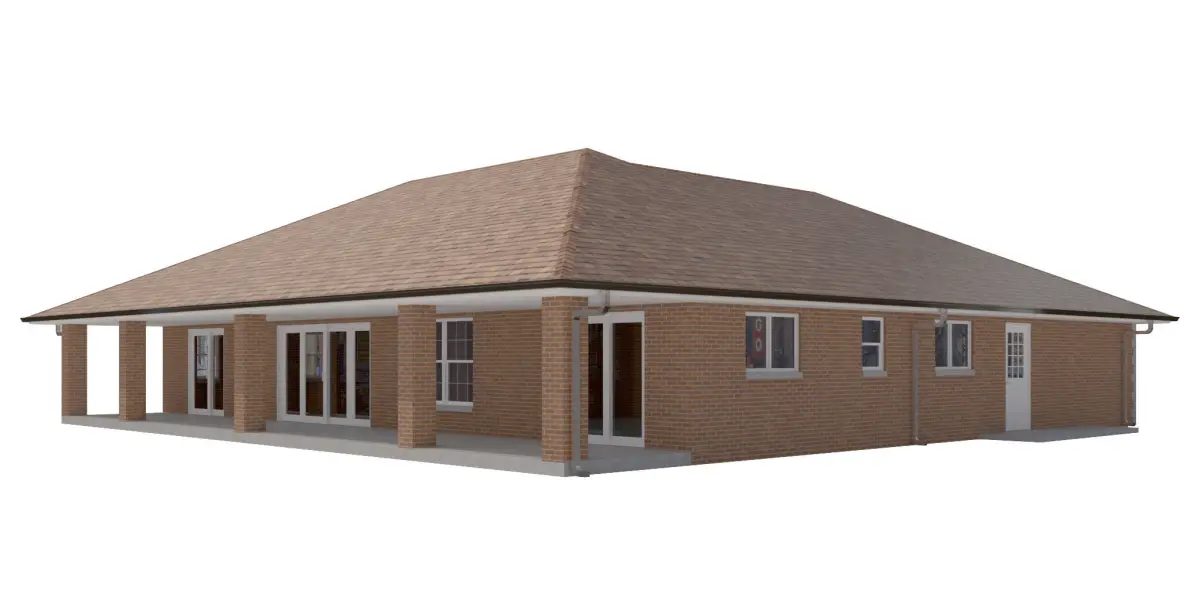 +/- 3,056 Square Foot 1 story Home w. Brick Exterior and Stone Details 1 attached garages. House entry has Wood ceilingHigh Detail Exterior Model including doors and windows.-House includes Rear porch with concrete floor