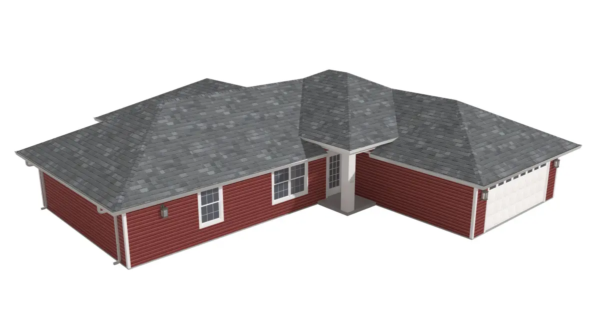 -Set to 0,0,0 Axis -All objects grouped into a single group for easy scene movement.-Concrete, shingles,siding, textures included. -Glass is reflective so you dont see inside as much-Gutters and Downspouts included.-HVAC Unit on Exterior Included-Great house for any infill scene-Low Poly.