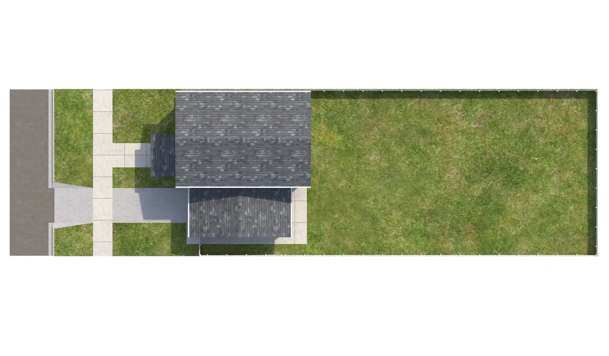 House Modeled to Scale and Dimensions: US ImperialHouse Model is: 32 feet x 20 feet x 23 feet high at high point of roof. Polygons: 12,849. Vertices: 13,842Site: 151 feet x 43 feet wide. Dimensioned from back of yard to front of curb and street. Polygons: 18,704, Vertices: 11,261
