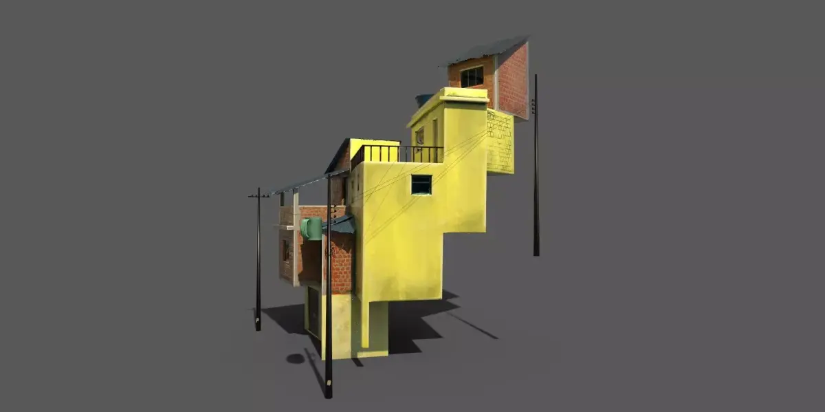 This asset represents a detailed section of the full Favela scene, which can be seen in the preview images. It's a fragment of a larger environment, making it perfect for modular level design or environment set dressing.