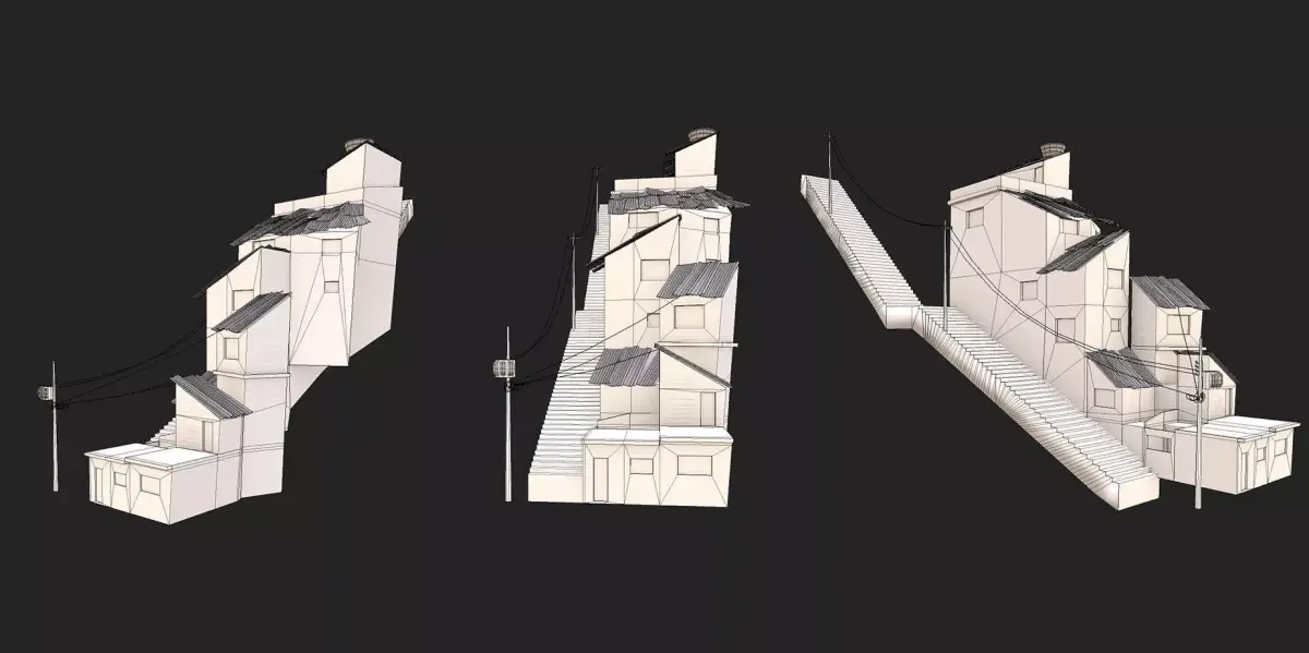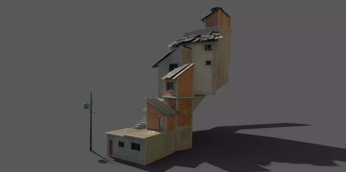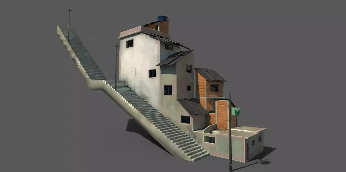 This asset represents a detailed section of the full Favela scene, which can be seen in the preview images. It's a fragment of a larger environment, making it perfect for modular level design or environment set dressing.