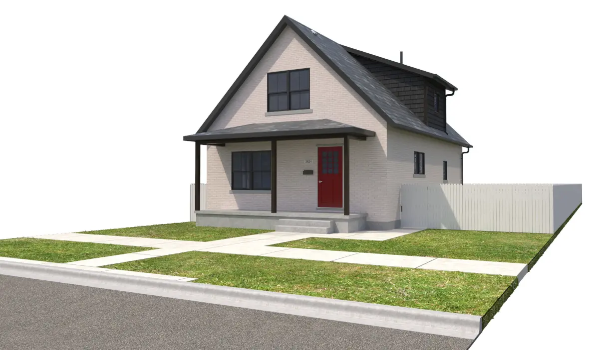 - High Detail Exterior Model. Interior is NOT modeled. House also includes entire site, including yard, sidewalks, fence,curb and curb cut, grass.