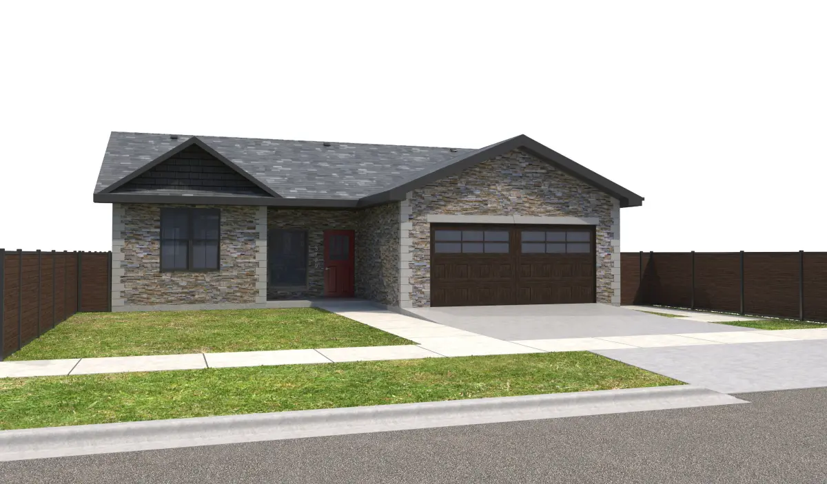 - High Detail Exterior Model. Interior is NOT modeled. House also includes entire site, including yard, sidewalks, fence,curb and curb cut, grass.