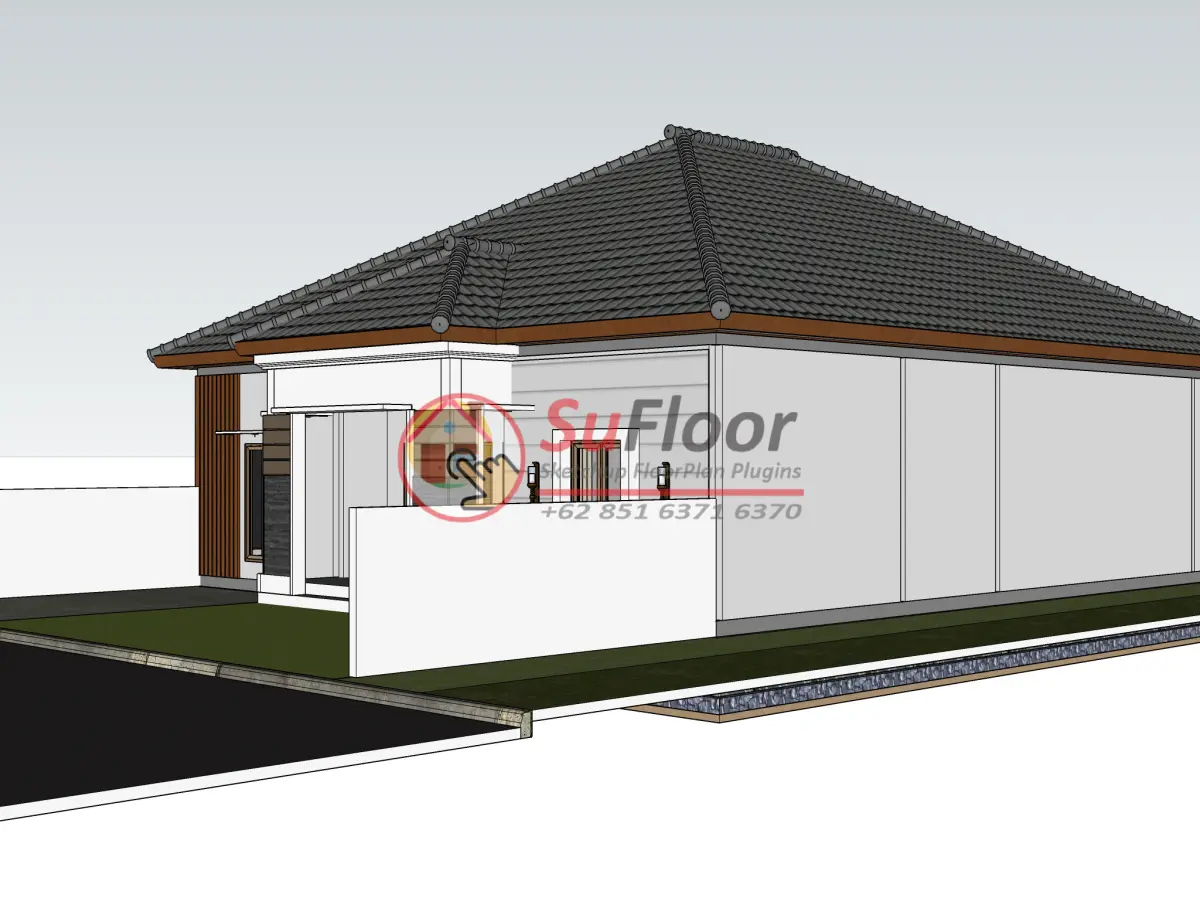 3D Sketchup House 10x19,5 m with : 3 Bedroom, 2 bathroom, 1 kitchen, 2 living room, 1 carport