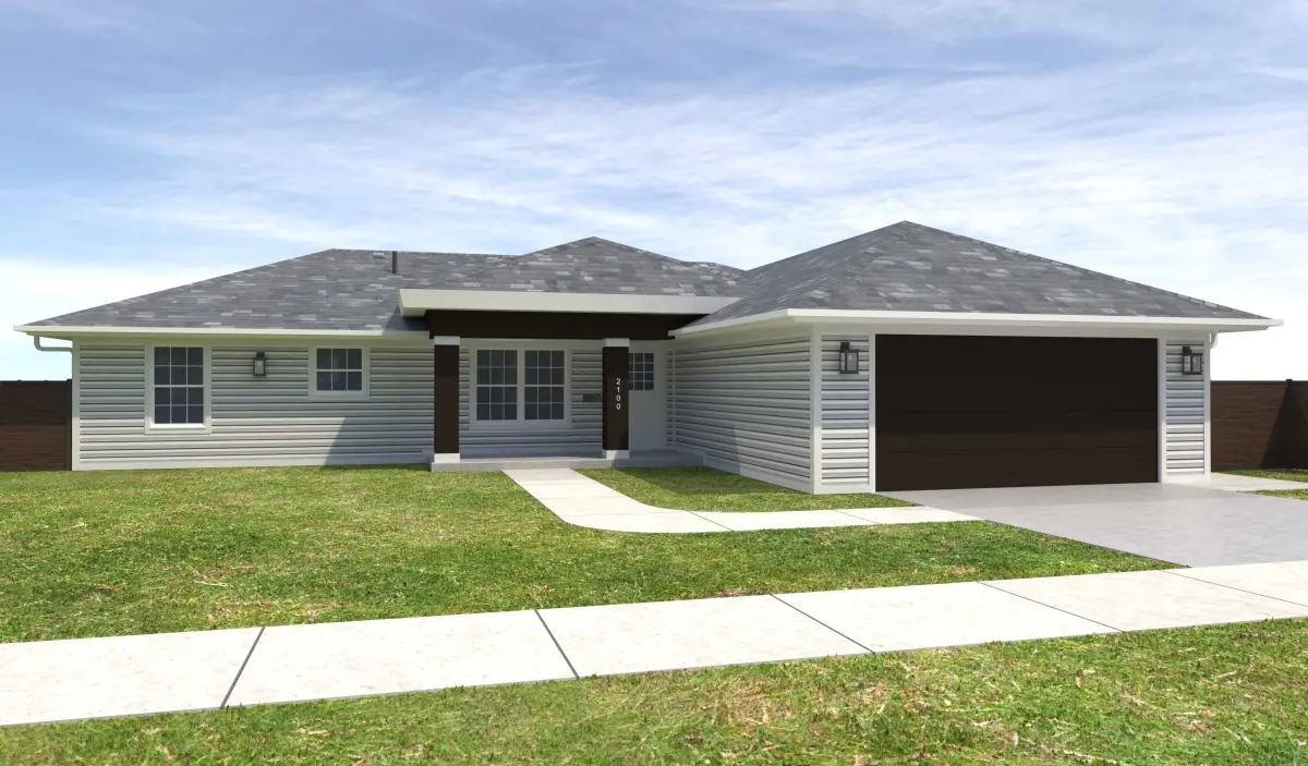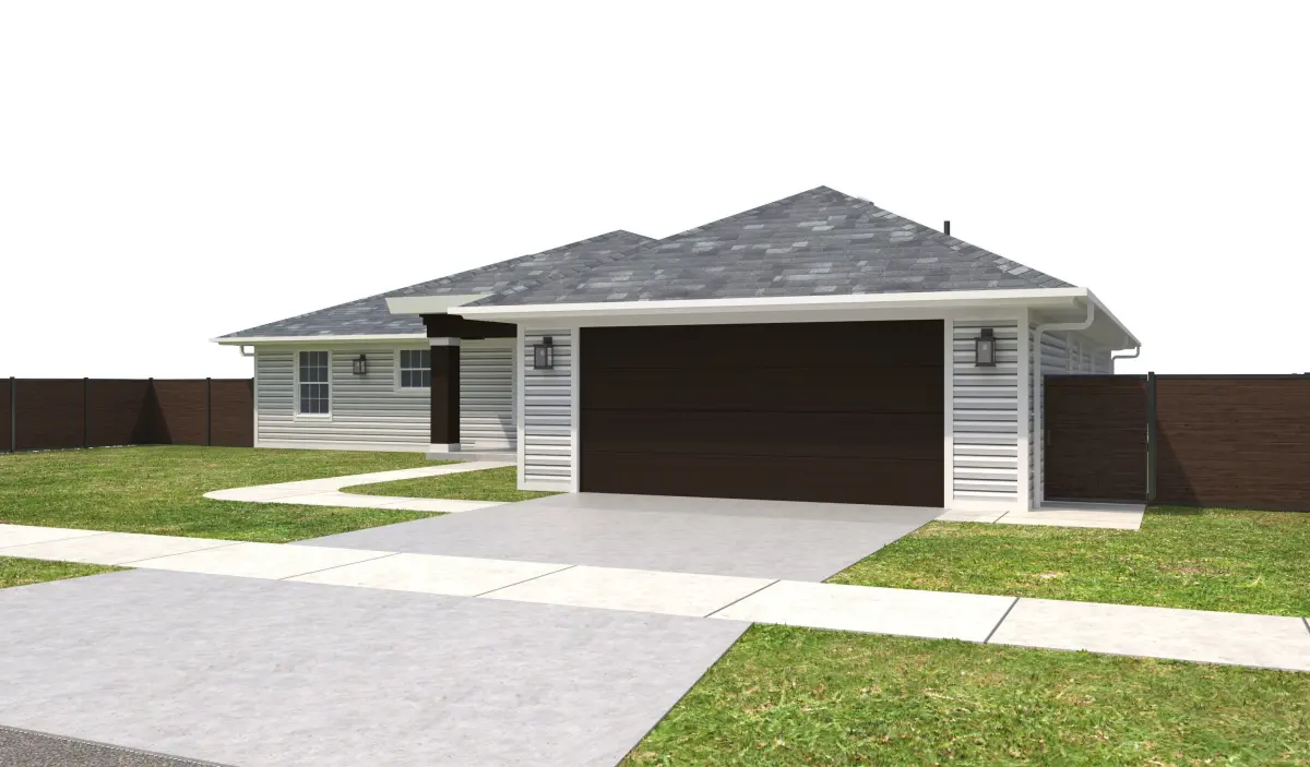 - +/- 2,572 Square Foot 1 story Home with a Garage . House has White Siding Exterior Walls, White Window Frames, and White Doors. Property has a Dark Wood fence.