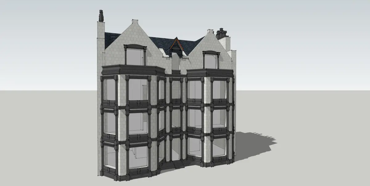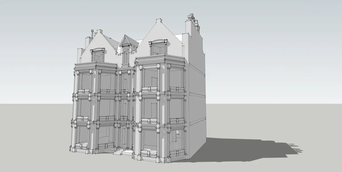 Simple 4 storey house. Classicism/ victorian stiled. Real sized model. Every element on proper layer. Richly decorated house.No texturing.House without furtinure, systems, only building, structure, roof and base. Perfect for games, for interior designing and etc.