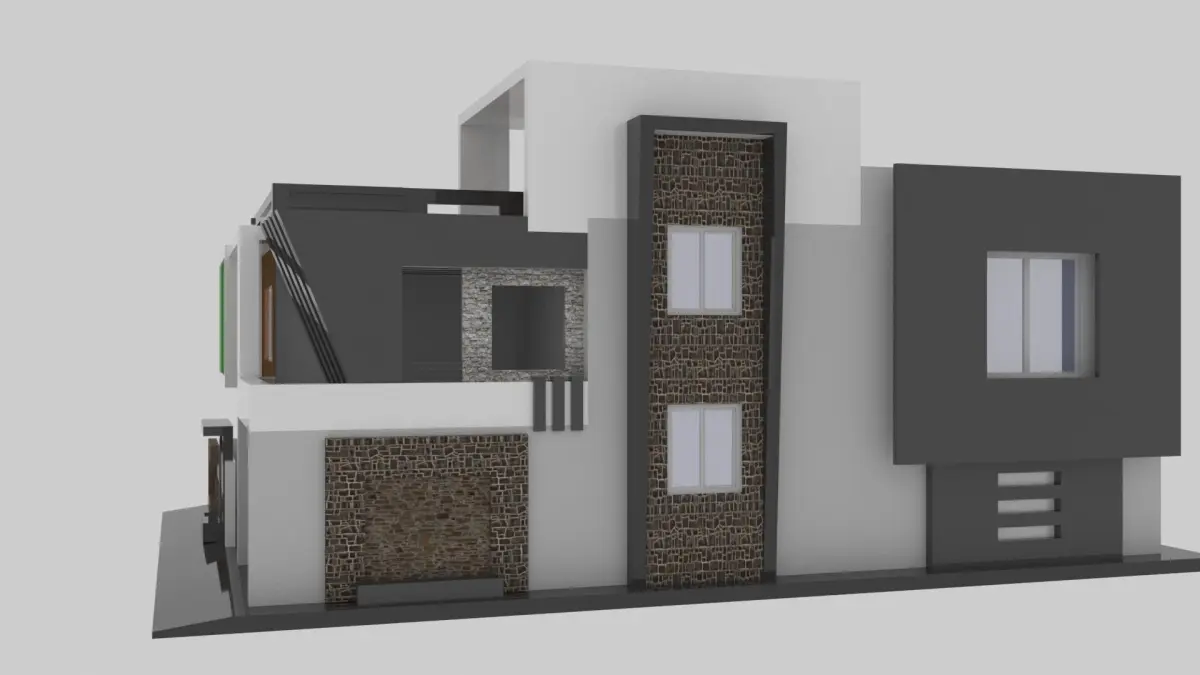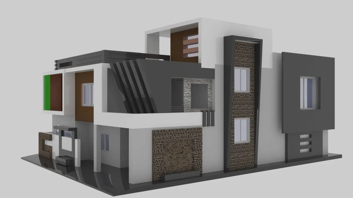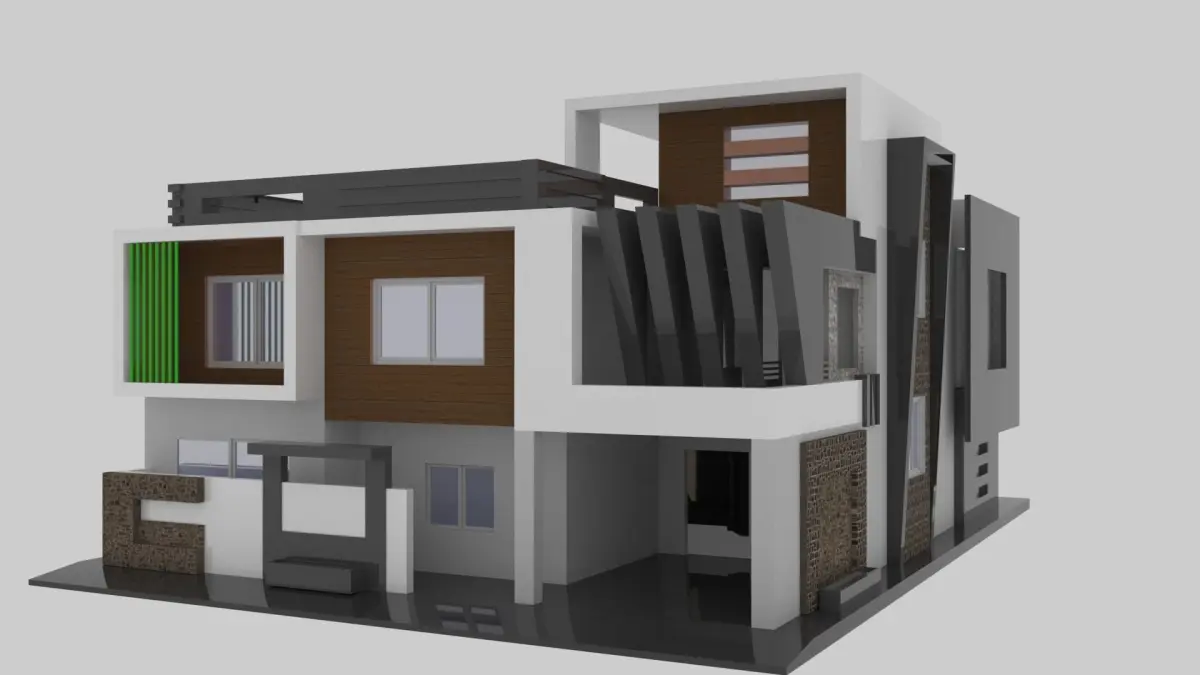 3D model of a modern house without the interior