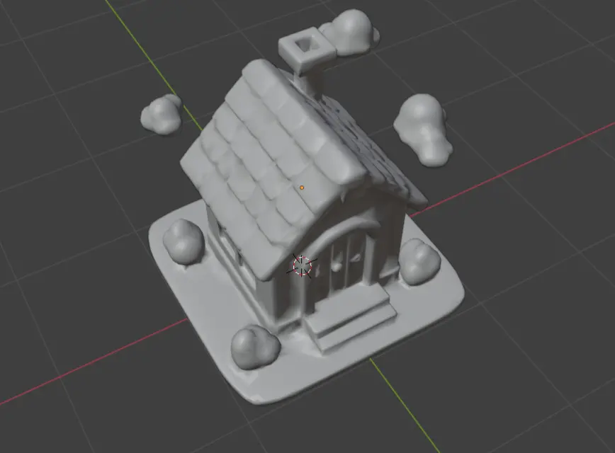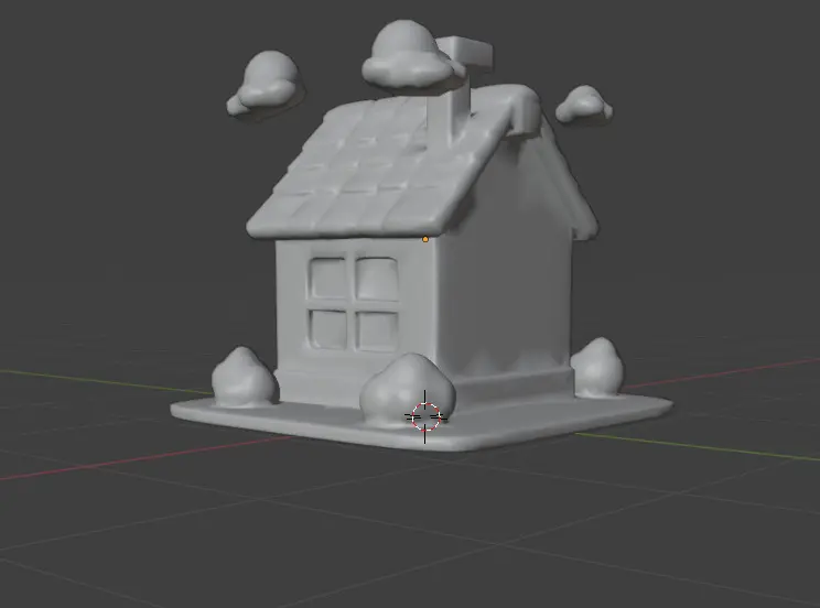 Це невеликий котедж в мінімізованому дитячому стилі. Він підходить як для друку, так і для анімації. Також перед роботою був доданий ескіз. Дизайн відрізняється спрощеними, грайливими пропорціями, що робить його ідеальним для стилізованих середовищ. Модель оптимізована для 3D-рендерингу та друку, з чистою топологією та добре відображеними UV-розгортками. Текстури підсилюють його естетику, схожу на іграшку, забезпечуючи сумісність з різними платформами, включаючи ігрові движки та робочі процеси анімації. Додаткові деталі включають структурований дах, вікна та двері, які підтримують баланс між простотою та реалістичністю.