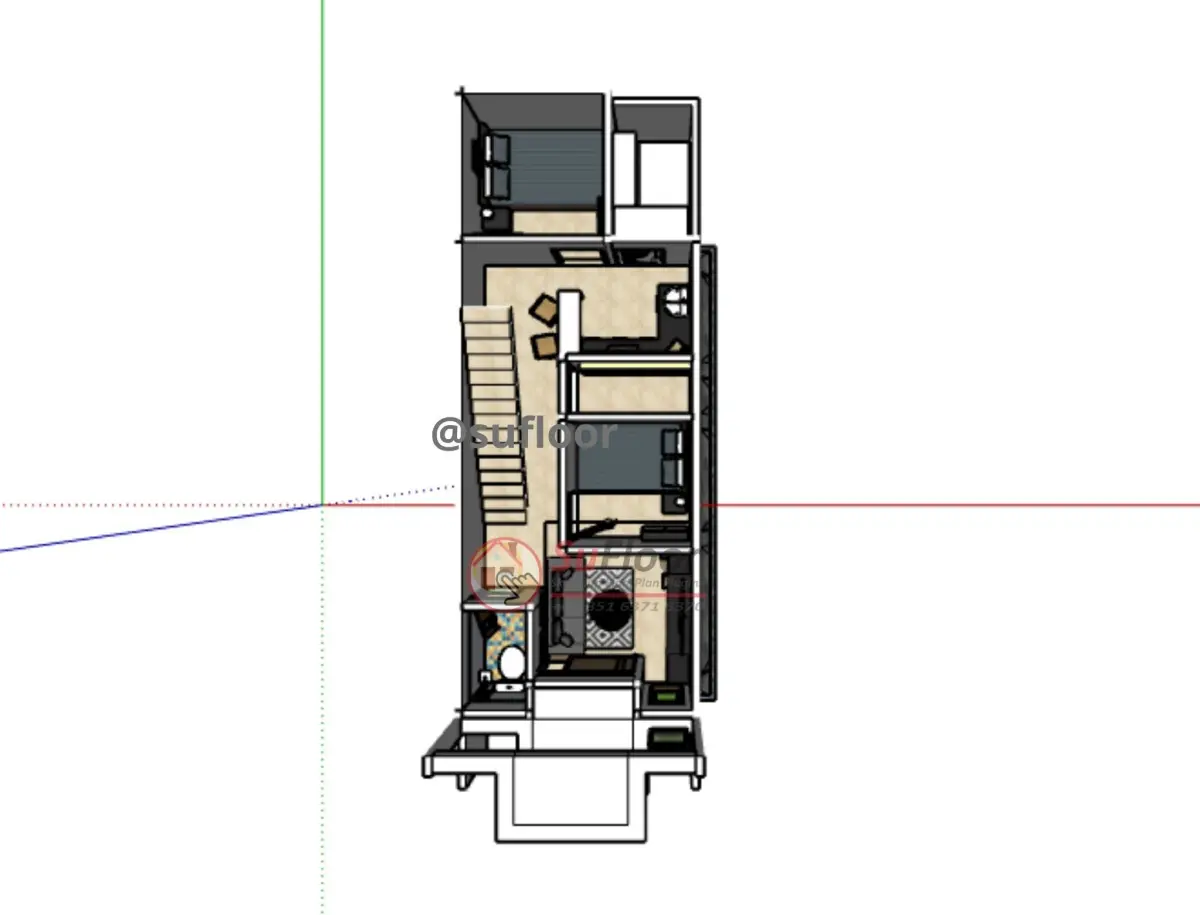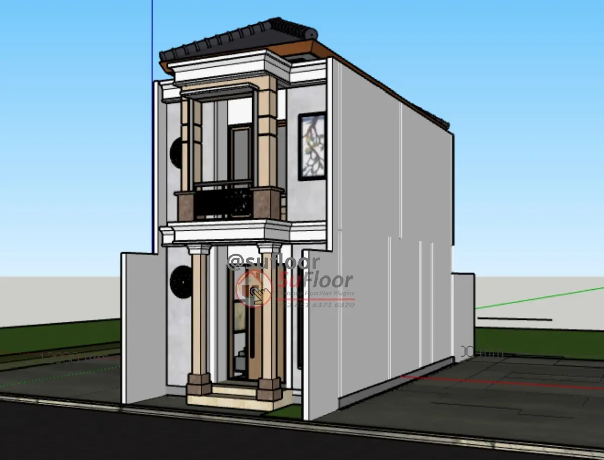 3D Sketchup House 4x12 m with : 4 Bedroom,2 bathroom, 1 kitchen, 1 living room, 1 family room, 0 carport