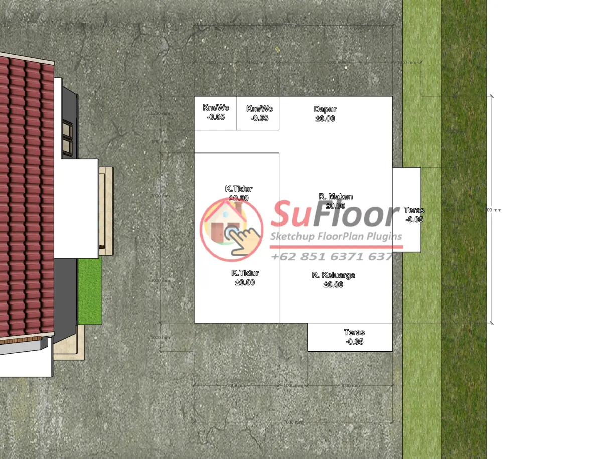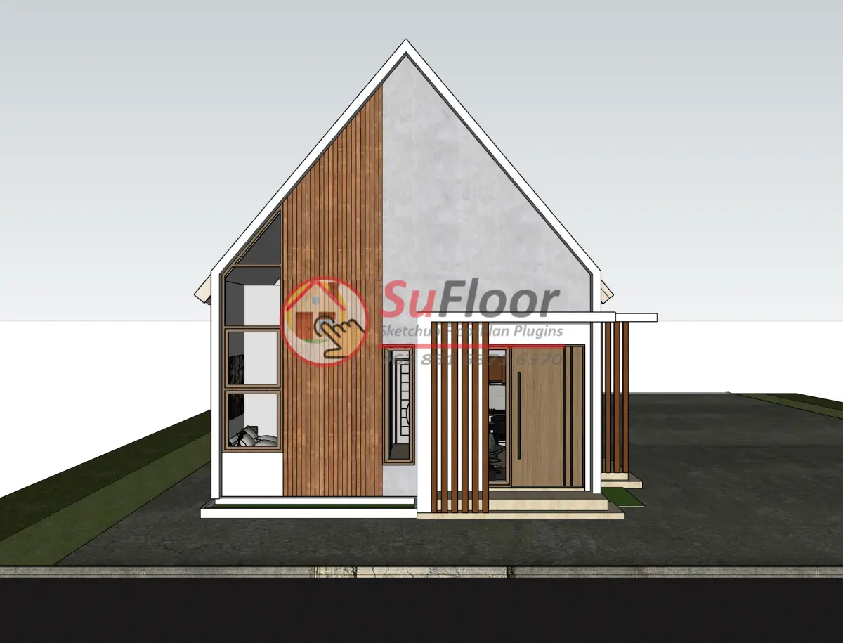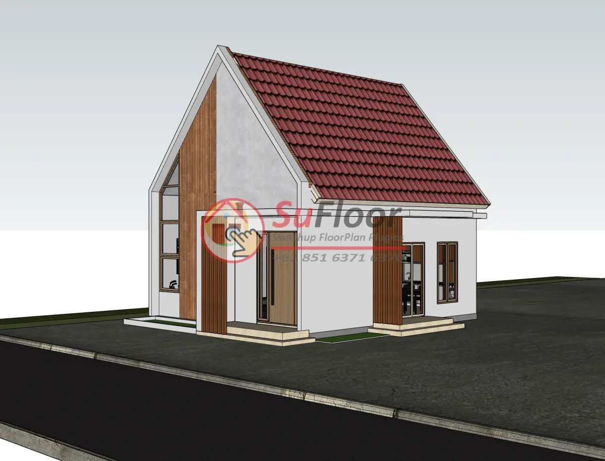 3D Sketchup House 7x8 m with : 2 Bedroom, 2 bathroom, 1 kitchen, 1 living room, 1 carport