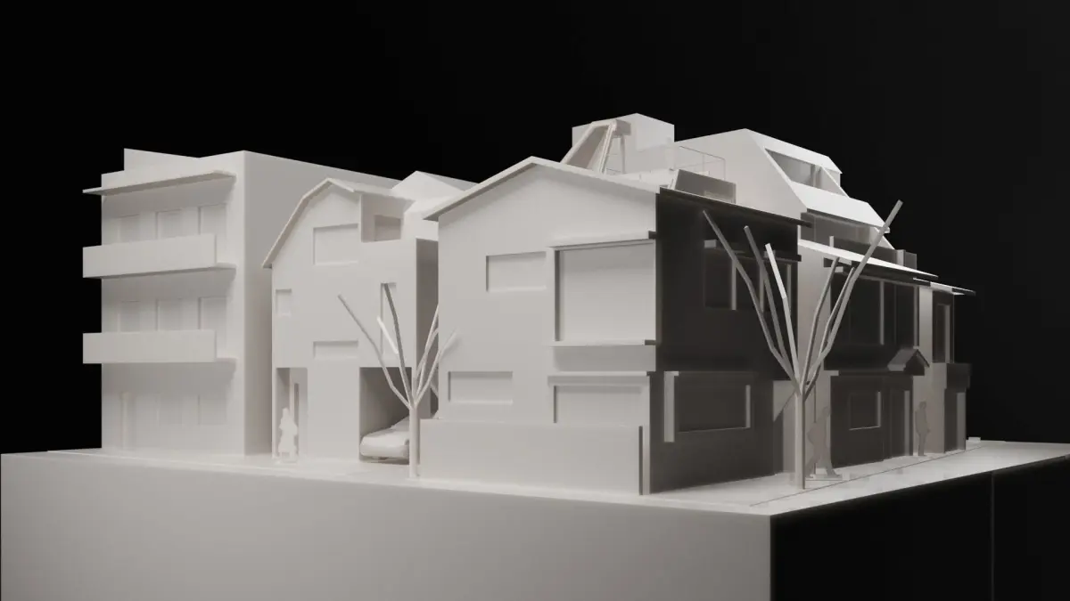 Throw in some plastic people and trees in the mix and you got yourself a small physical model kit to be freely adapted with any project of your choice. Here the House and Atelier Bow wow seemed like a fine example to illustrate.Feel free to try out several rendering materials in the 3-lights studio set up : 3d printing, wireframe, plain wood, etc.